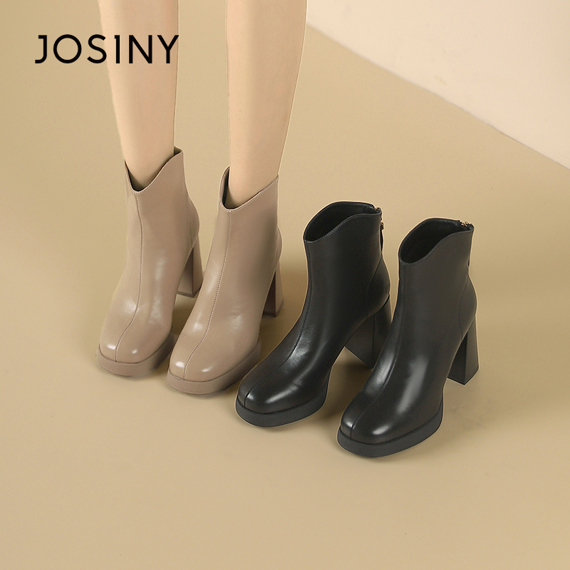 卓诗尼冬季女靴撤柜正品怀旧英伦短靴舒适圆头小个子高跟通勤百搭