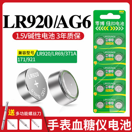 AG6手表电池SR920SW纽扣电池适用卡西欧天梭1853天王罗西尼阿玛尼CK石英电子迪赛LR920通用AG6纽扣1.5v锂电池
