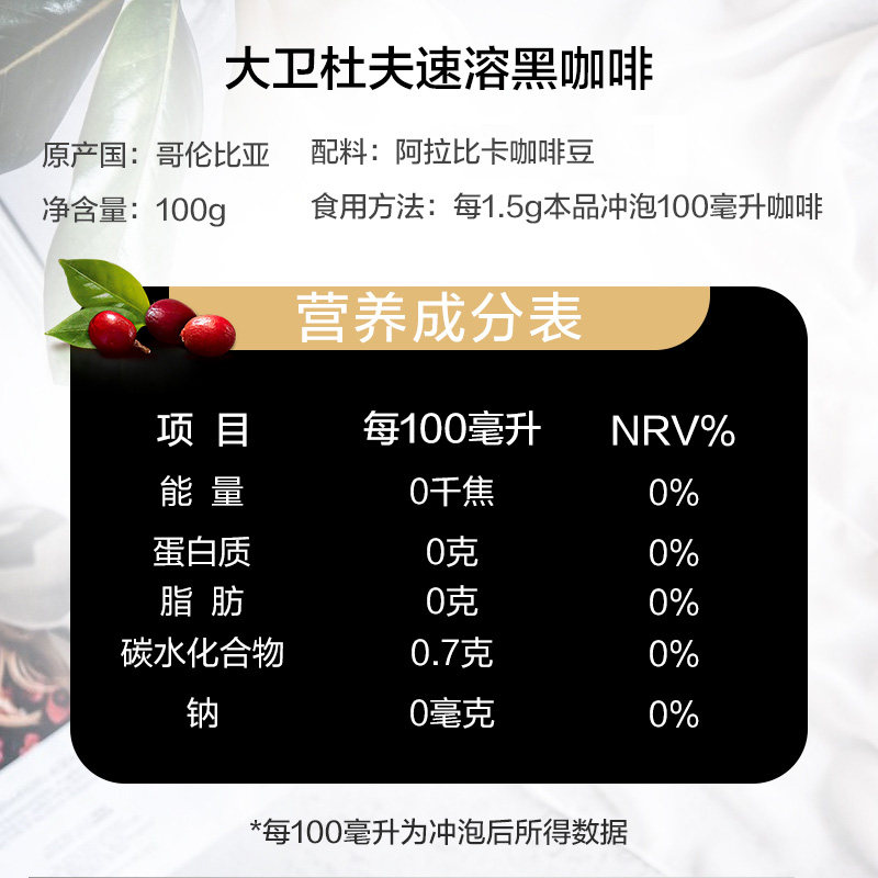 Davidoff大卫杜夫进口意式浓缩美式纯黑咖啡速溶冻干防困咖啡瓶装