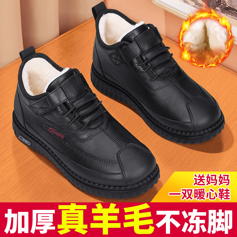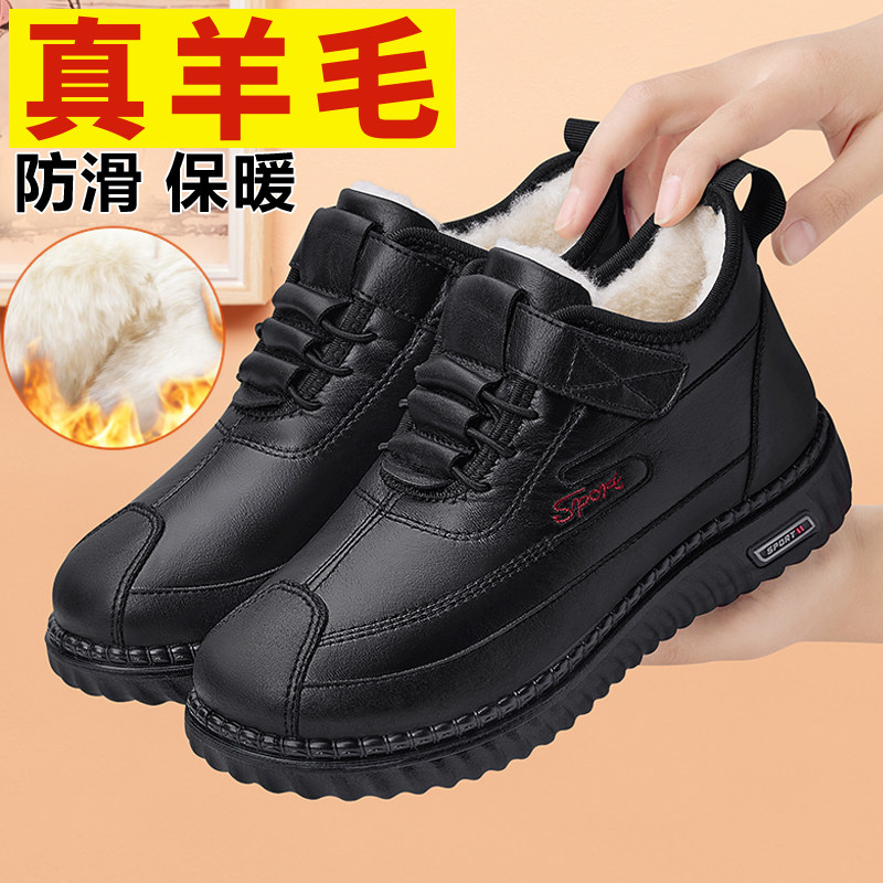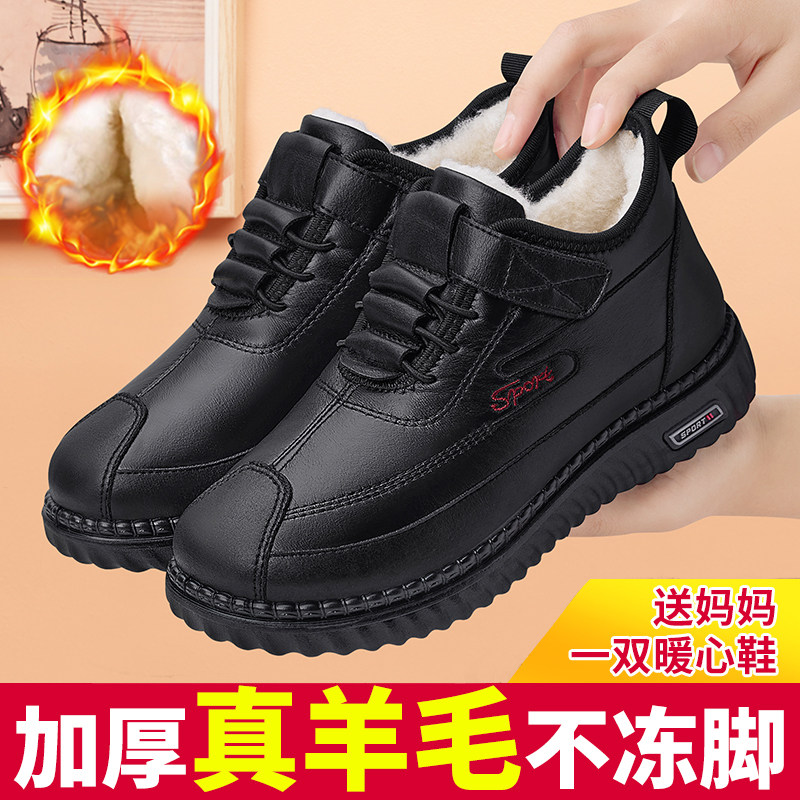 老北京棉鞋女新款冬季加绒保暖中老年妈妈鞋皮面防滑软底老人棉靴
