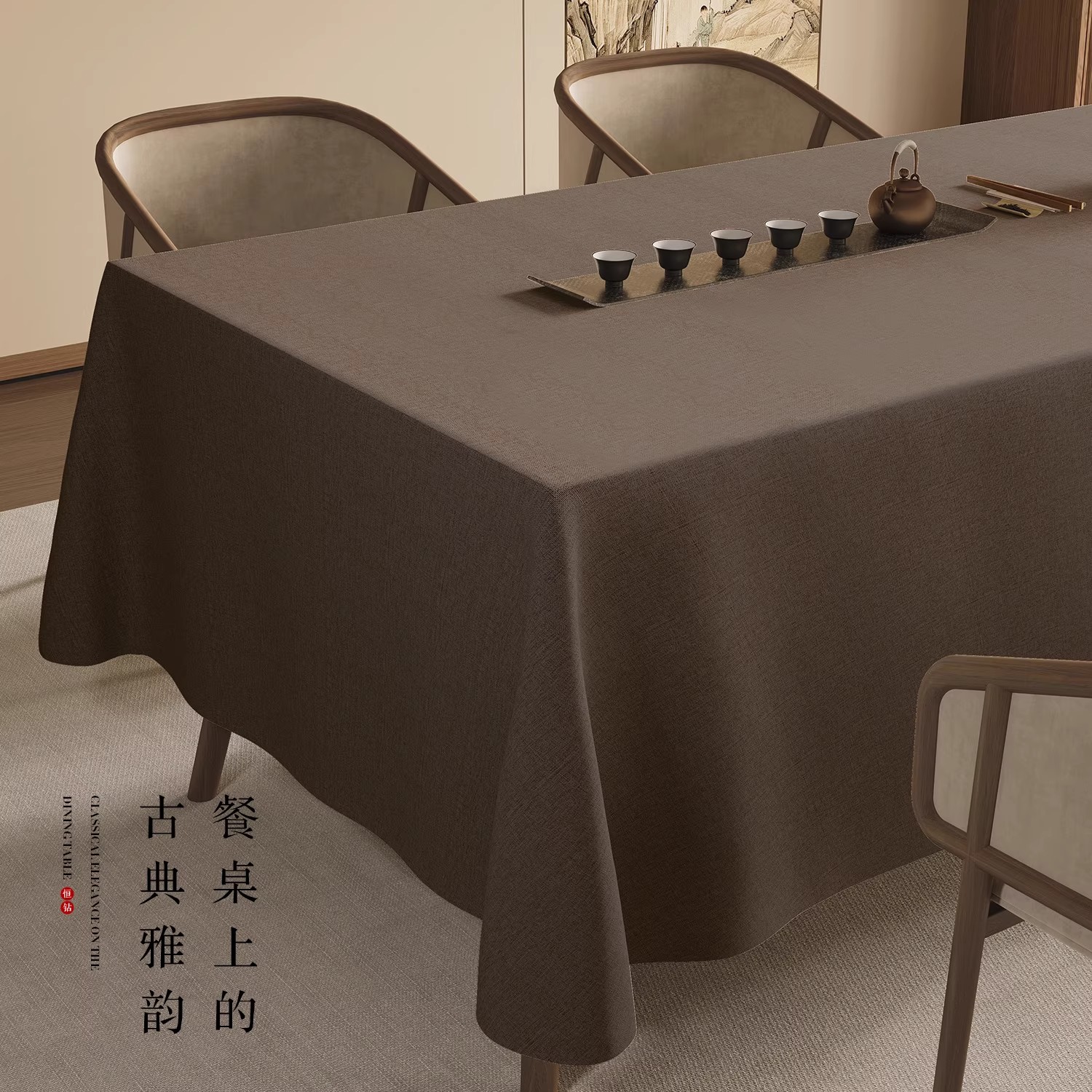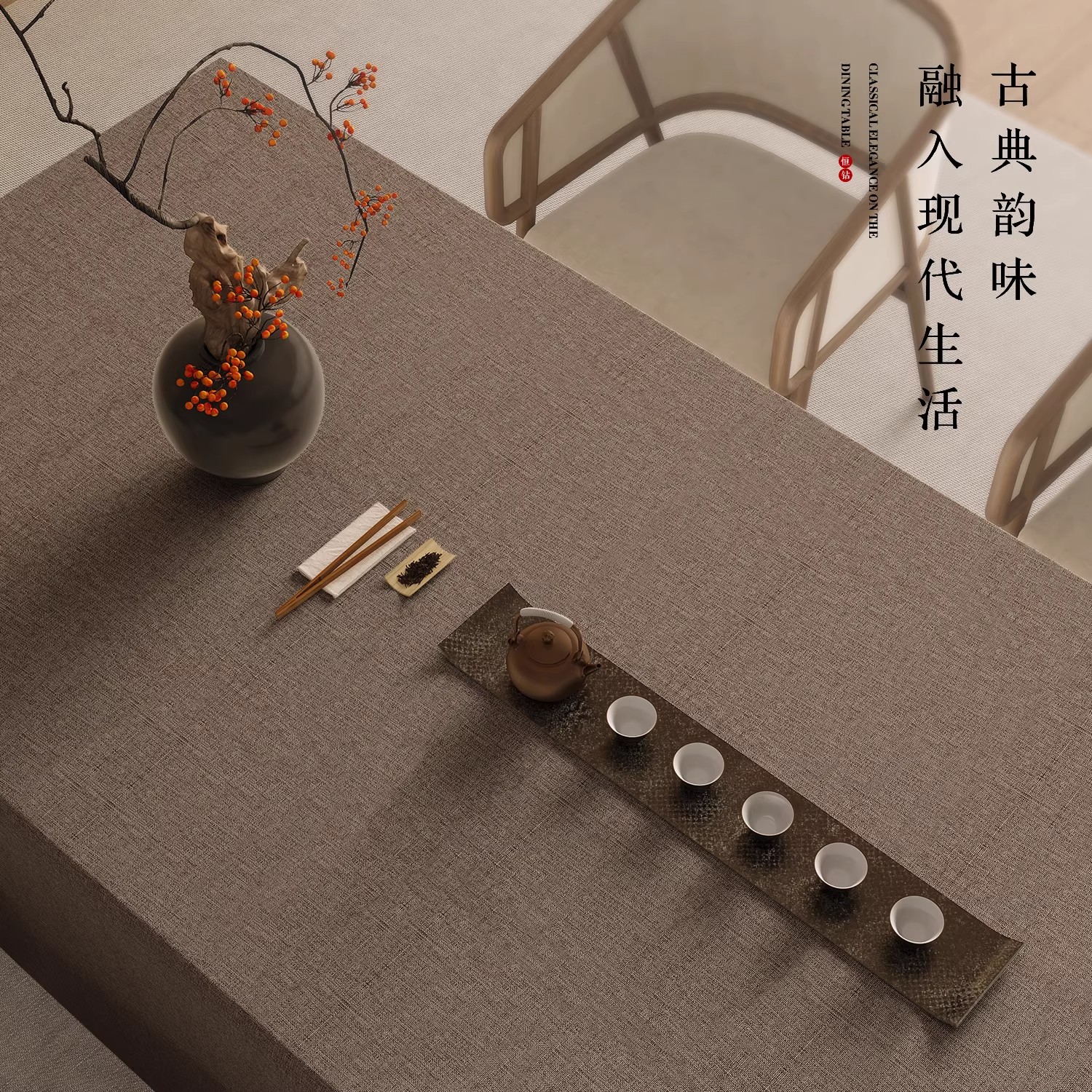 中古风桌布棉麻布艺中式茶桌防水亚麻加厚台布长方形餐桌布茶几布