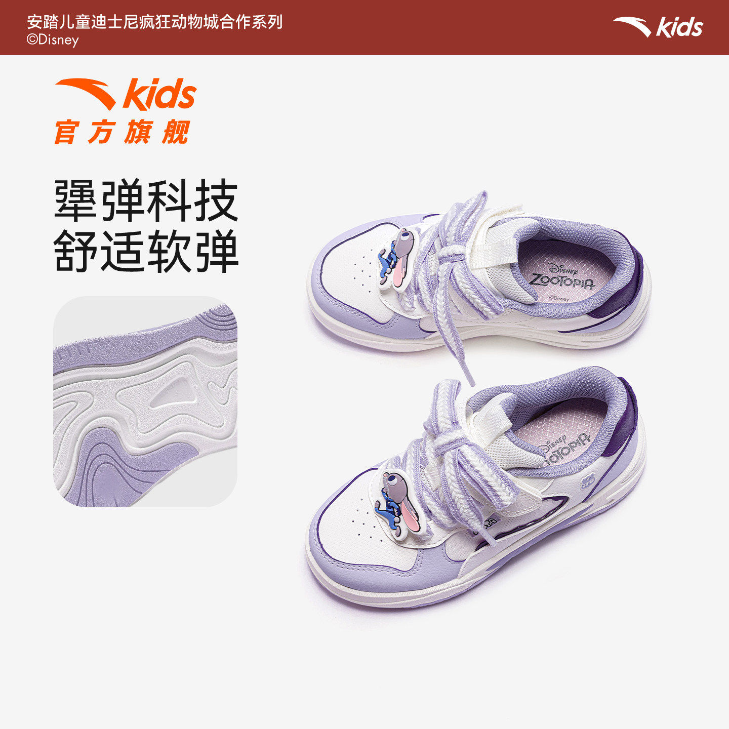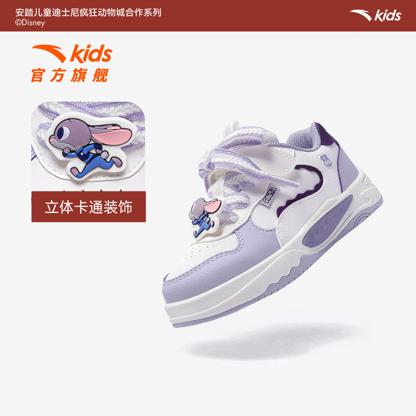 疯狂动物城IP联名安踏儿童板鞋女小童鞋2026新款低帮板鞋运动鞋