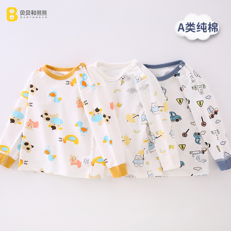 宝宝秋衣纯棉婴儿内衣保暖男童单件上衣春秋女童打底内穿儿童衣服
