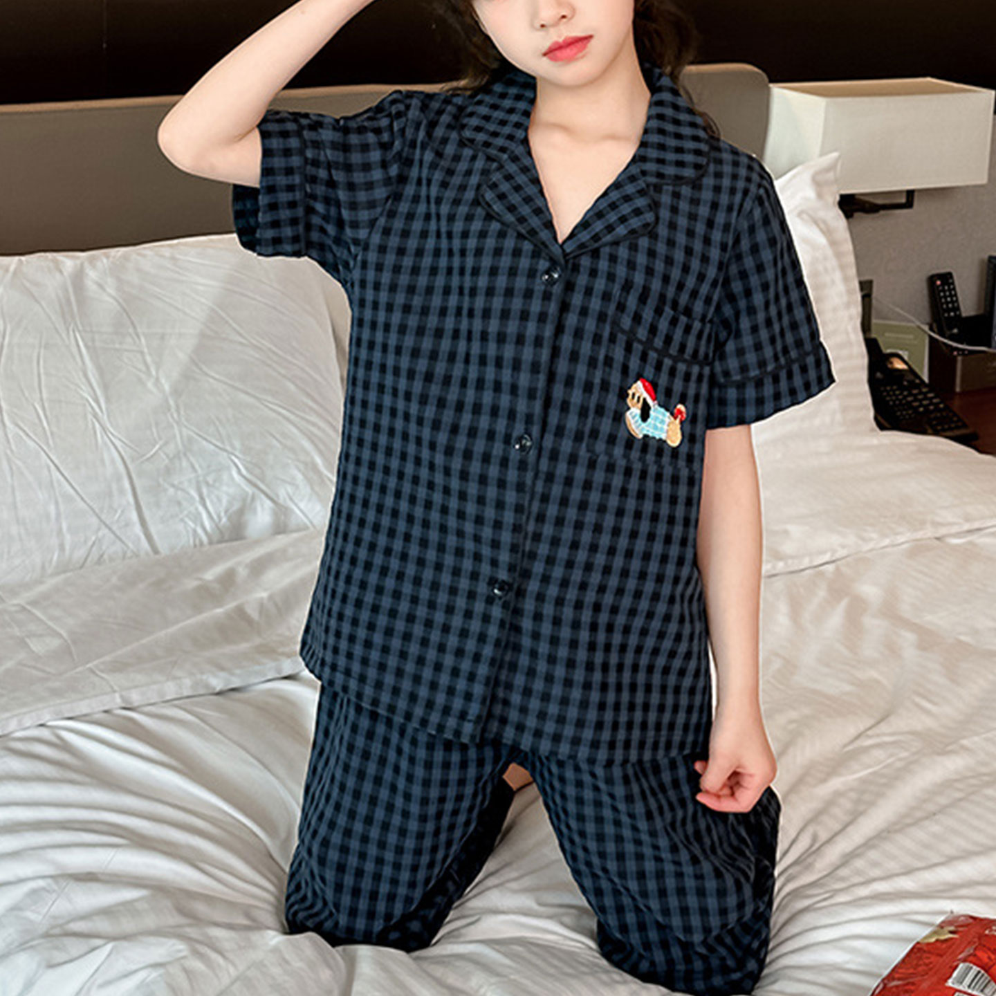 1米五小个子睡衣女夏季简约翻领开衫短袖短裤家居服xs小码三件套
