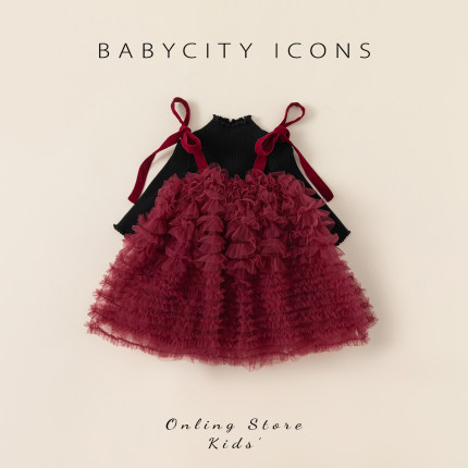 周岁女宝礼服女童公主裙儿童圣诞节衣服宝宝蓬蓬裙红色连衣裙冬装