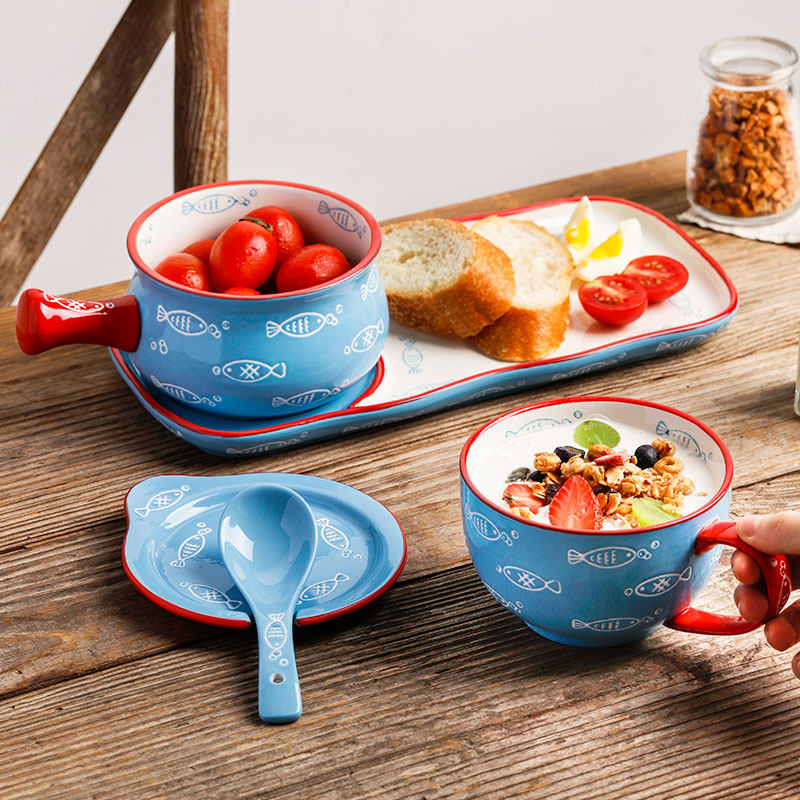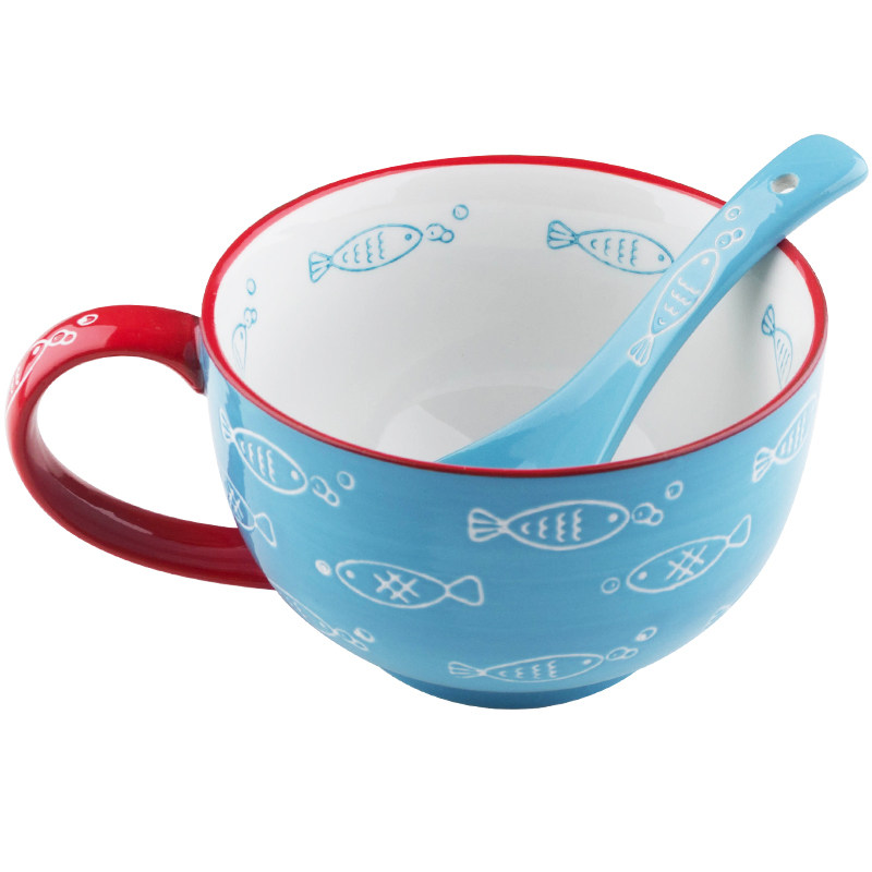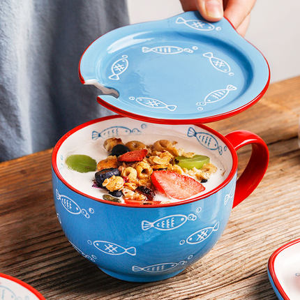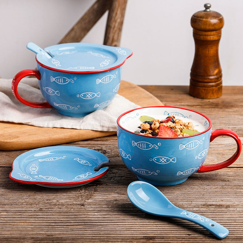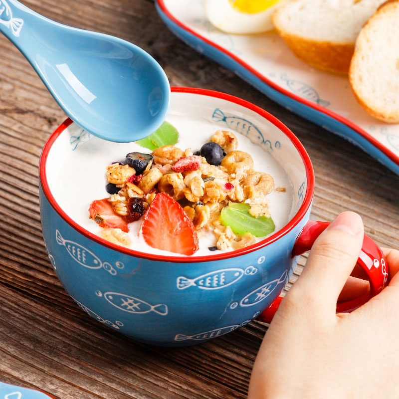 ezicok牛奶杯大容量汤杯可微波炉加热早餐燕麦碗陶瓷水杯釉下彩