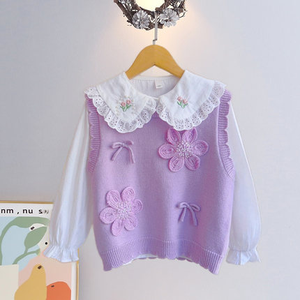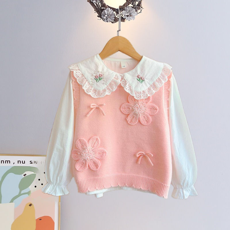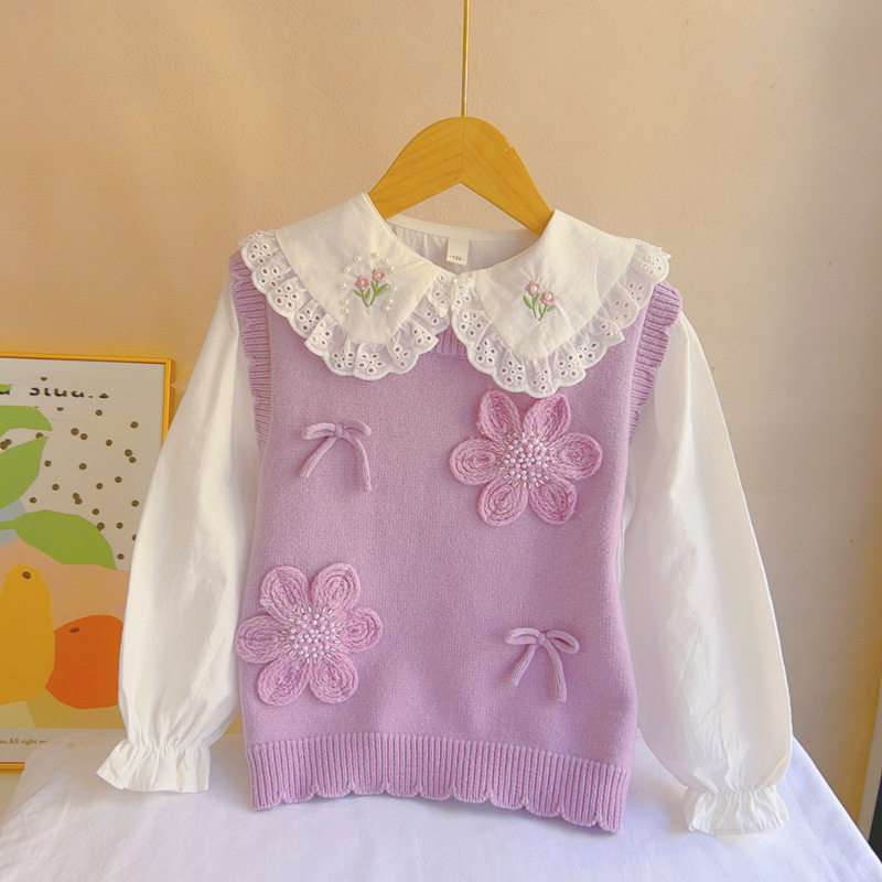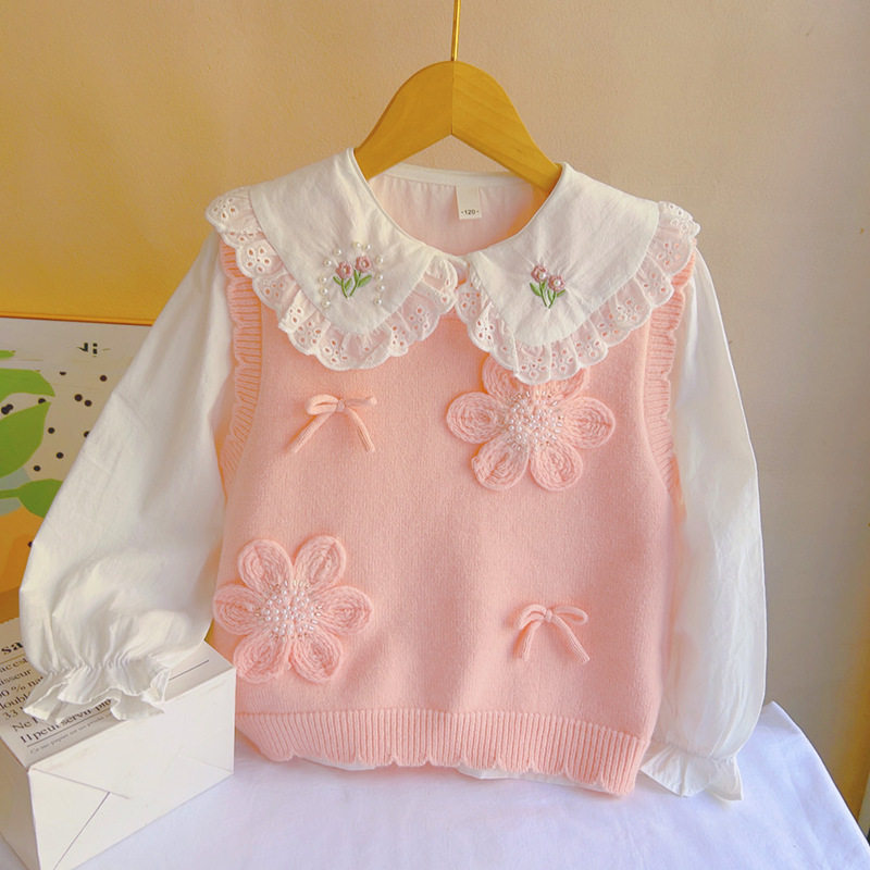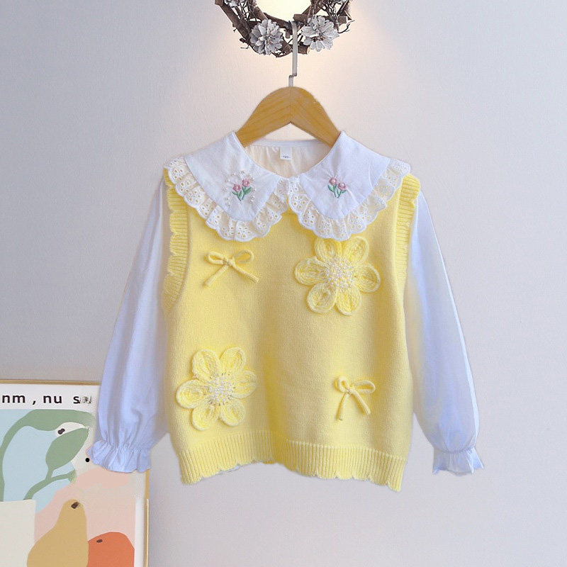 女童秋装套装2025新款两件套衬衫马甲韩版儿童小女孩洋气上衣背心