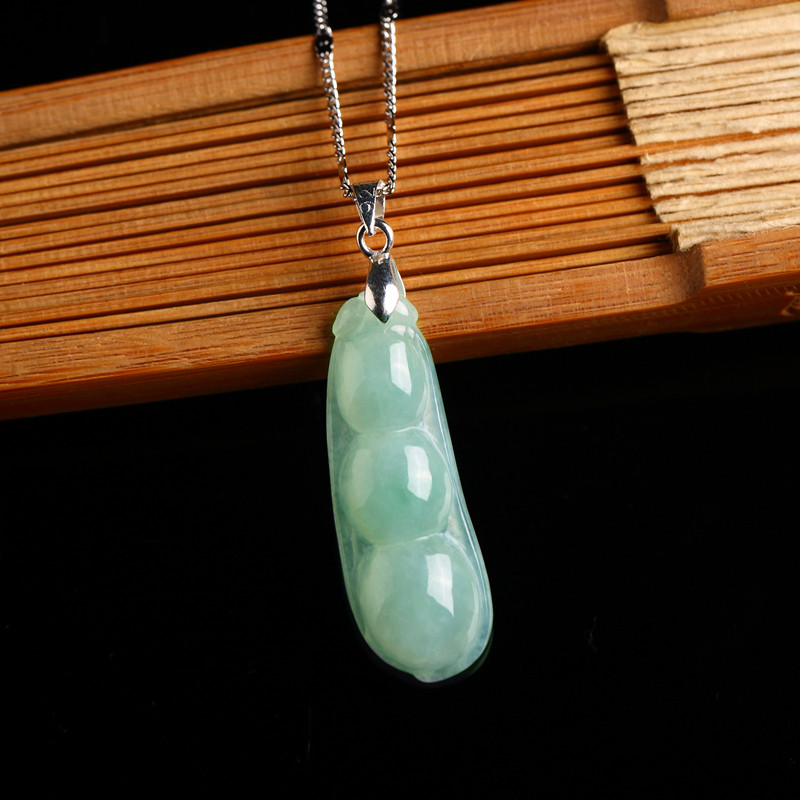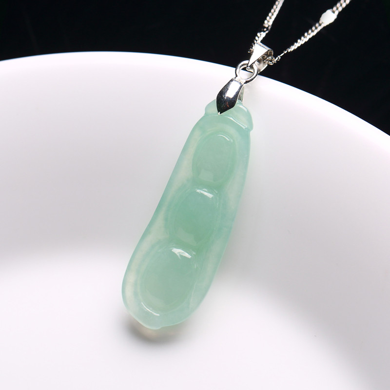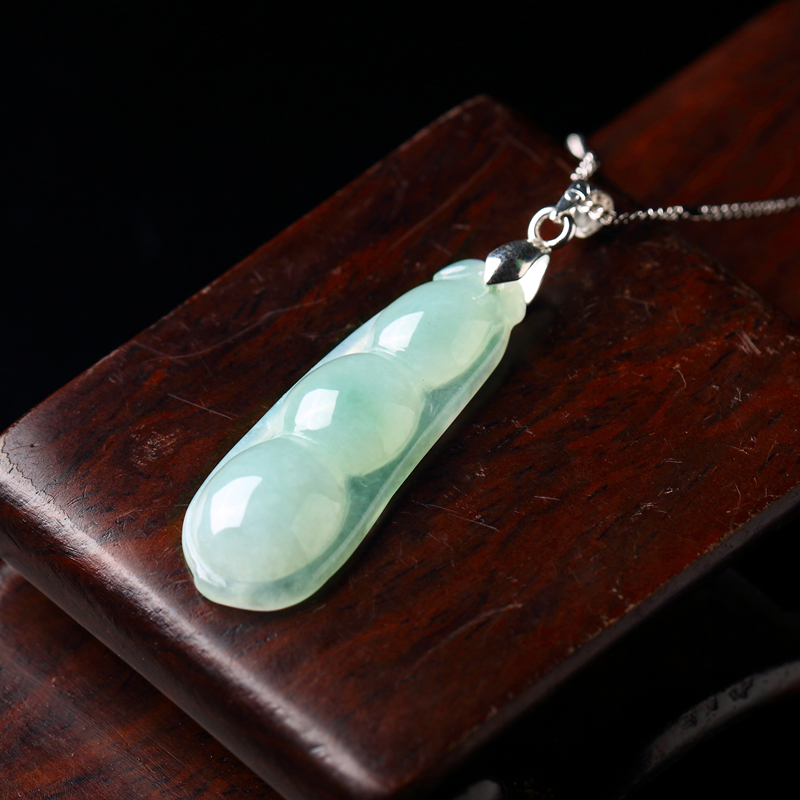 天然缅甸翡翠四季豆玉吊坠冰糯种玉石福豆玉坠女款玉佩925银项链