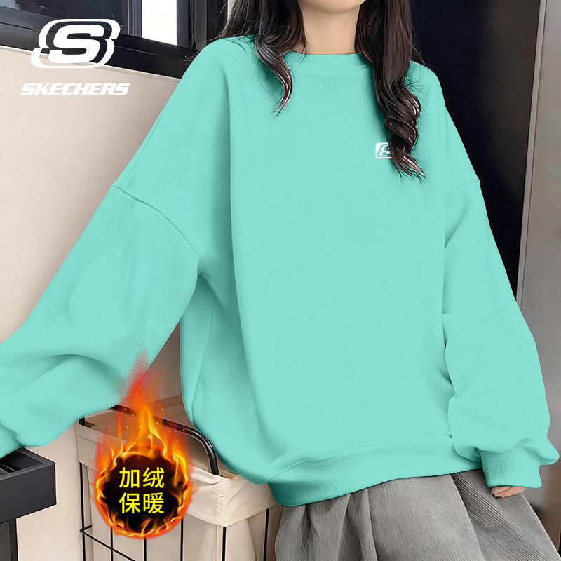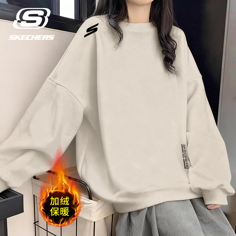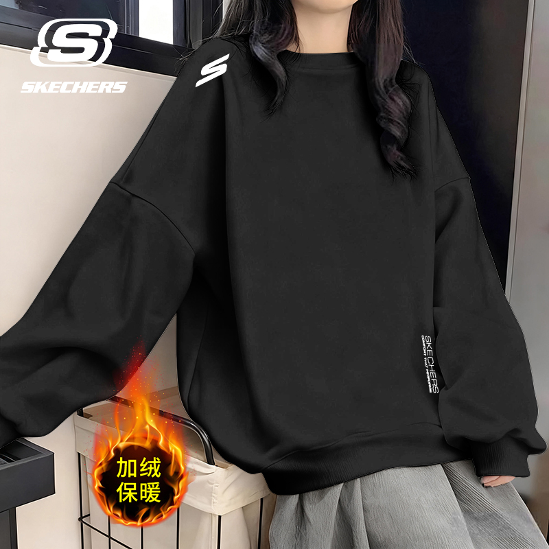 斯凯奇卫衣女秋冬新款高级感上衣宽松显瘦大码圆领加绒保暖针织衫