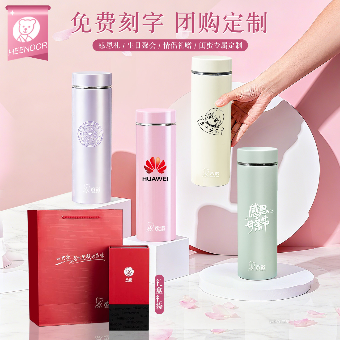 希诺新款保温杯办公室女生礼物水杯高颜值小容量便携学生上学杯子