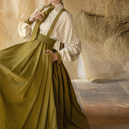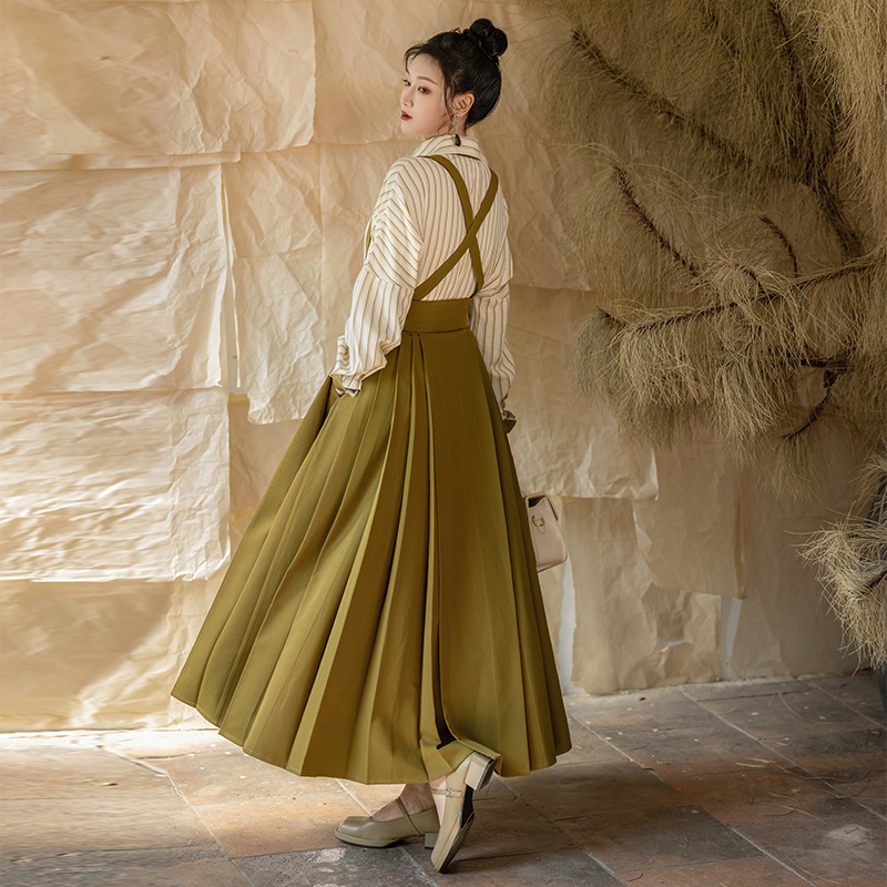 拟梦春山原创国风新中式轻汉服改良背带马面裙条纹衬衫通勤春秋女