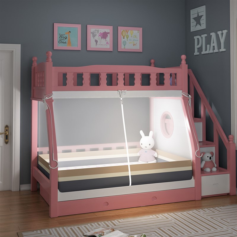 0FE9子母床蚊帐1.2m双层床下铺1.5米儿童实木家用高低床梯形