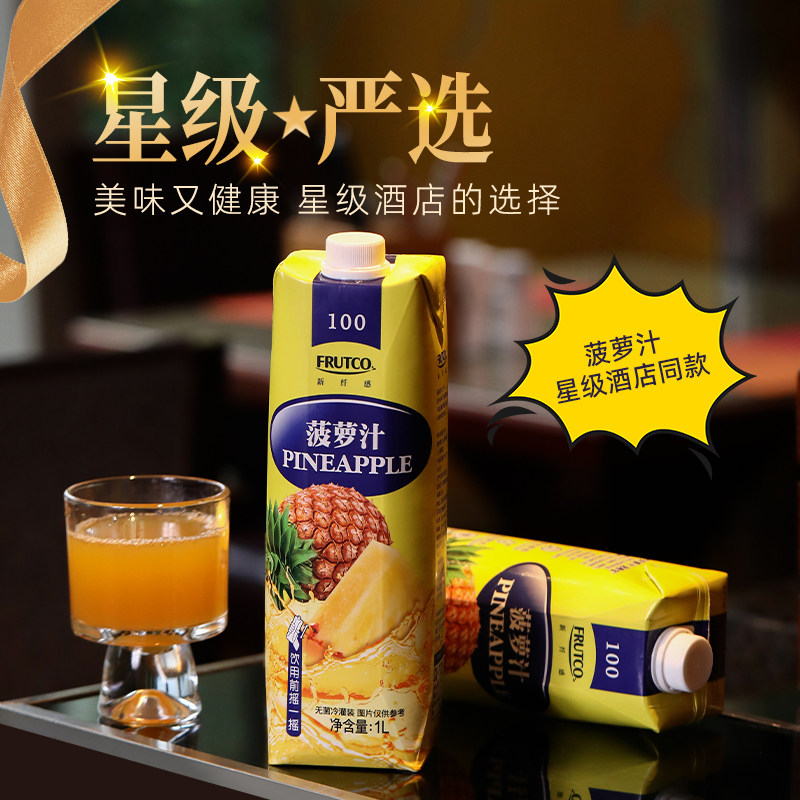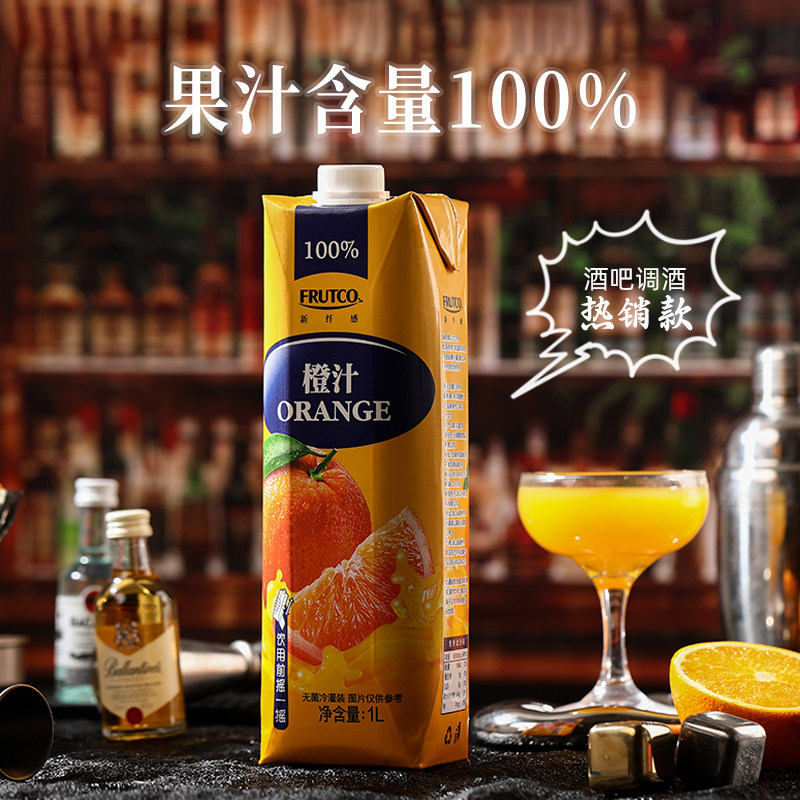 橙宝果汁100%橙汁纯果汁1L装菠萝汁果味橙c美式咖啡调酒用饮料