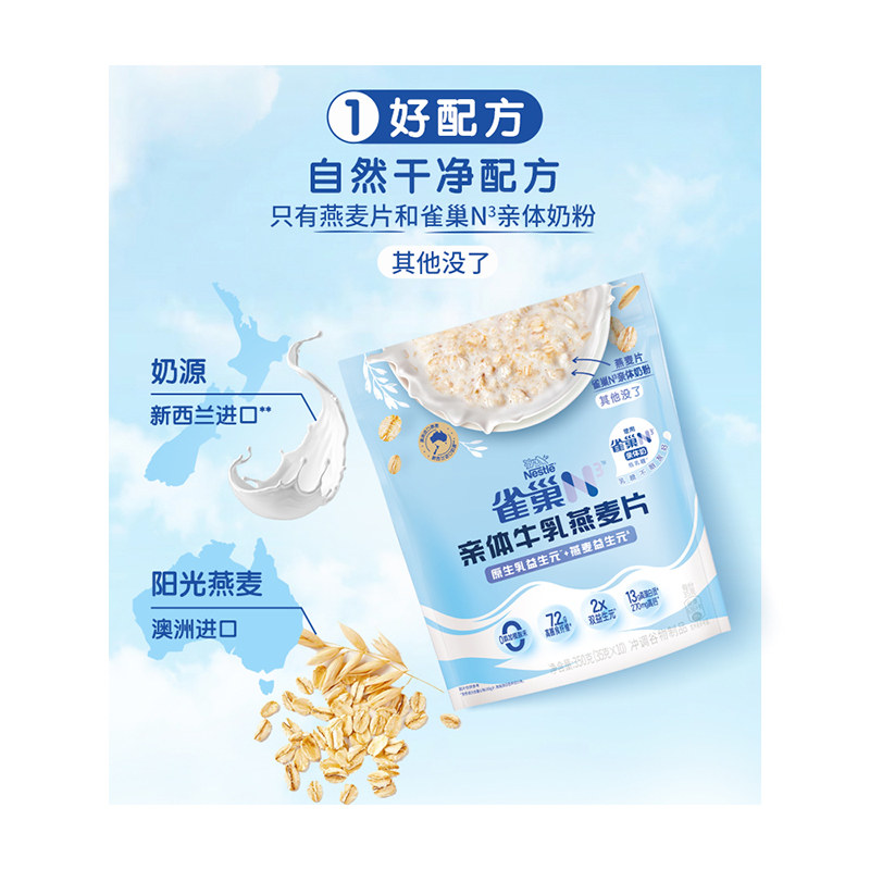 雀巢N3牛乳燕麦片低乳糖双益生元0添加蔗糖独立小包装350g