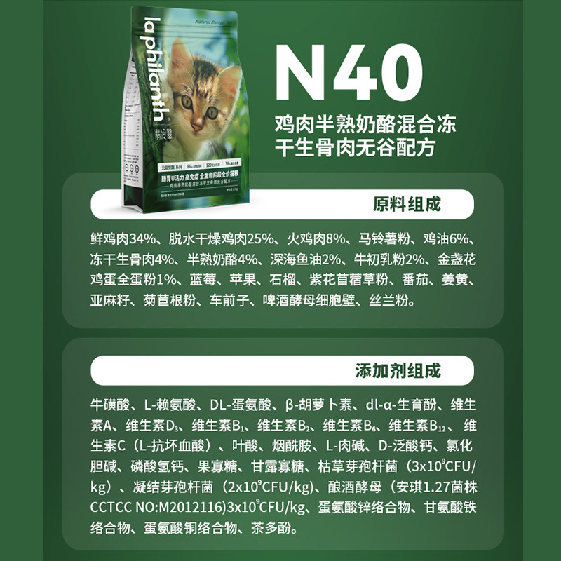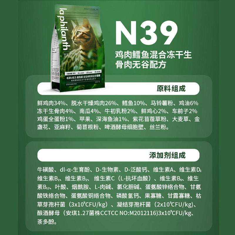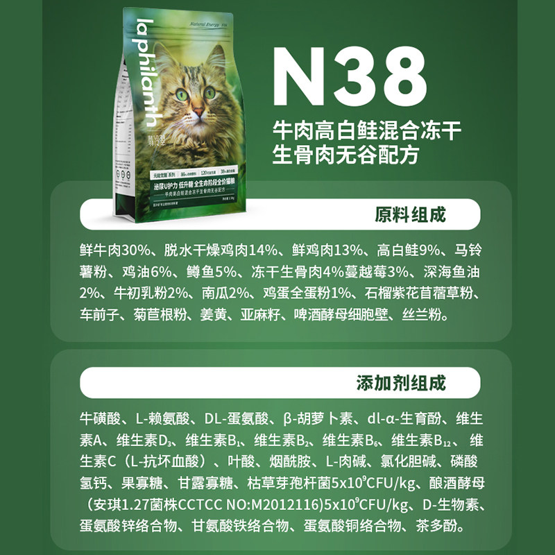 翡冷翠猫粮N38元能觉醒冻干成幼猫乳鸽鸡肉鱼肉全期泌尿无谷配方