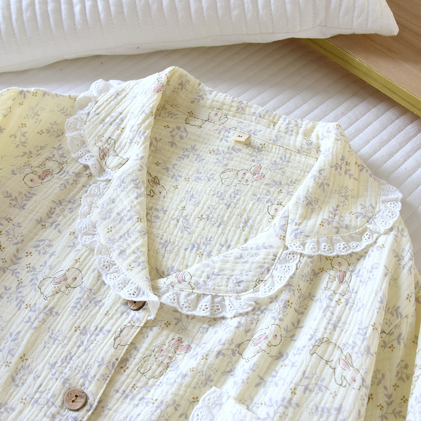 春夏秋季薄款纯棉纱布女甜美睡衣家居服全棉双层纱学生舒适可外穿