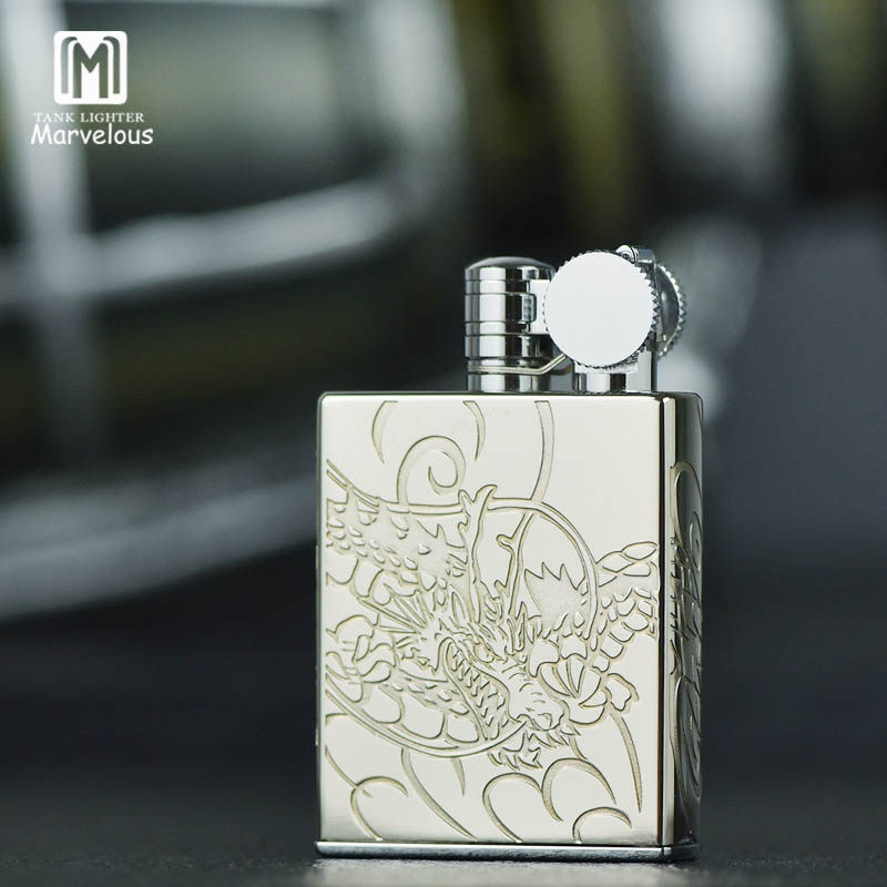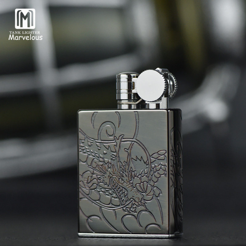 日本原装进口Marvelous/玛乐思砂轮打火机煤油四面雕刻龙收藏烟具