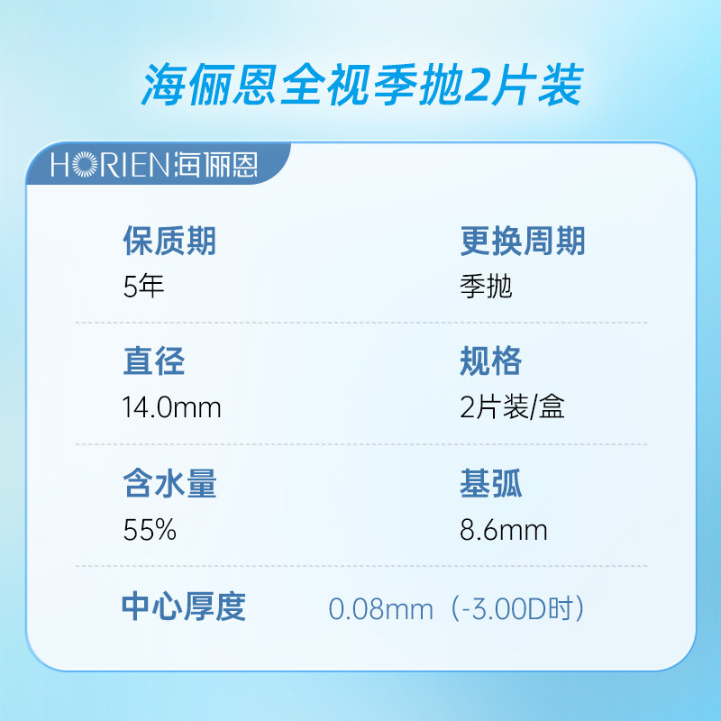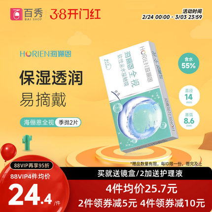 海俪恩全视隐形眼镜季抛2片装透明近视眼镜3月非半年抛美瞳透明片