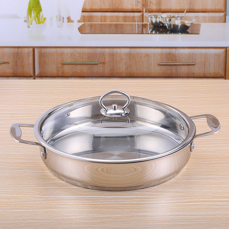 不锈钢浅底焖锅锅汤锅平底火锅海鲜锅三汁无水专用家用电磁炉玻璃