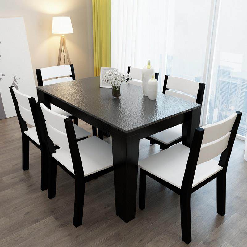 火烧石餐桌椅组合现代简约长方形餐台小户型饭桌时尚一桌四椅六椅