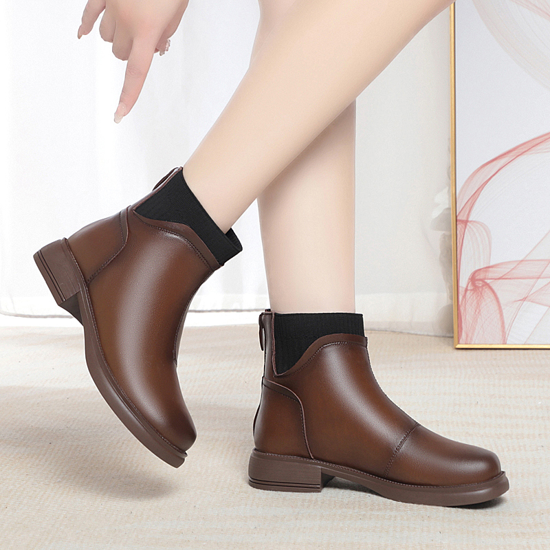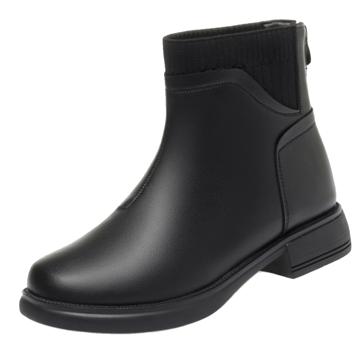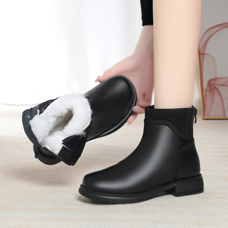 弹力靴女粗跟短靴2025新款加厚冬季真皮棉靴短筒皮鞋加绒靴子棉鞋
