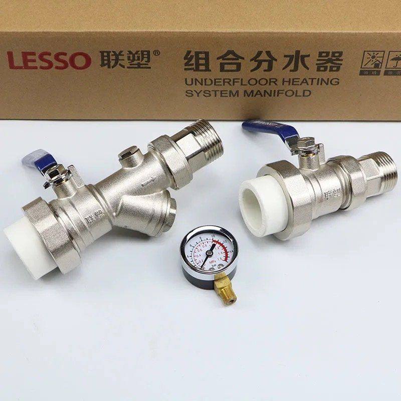 联塑家装纯铜地暖分水器二路三路4六路8路大流量套阀阀门配件组合
