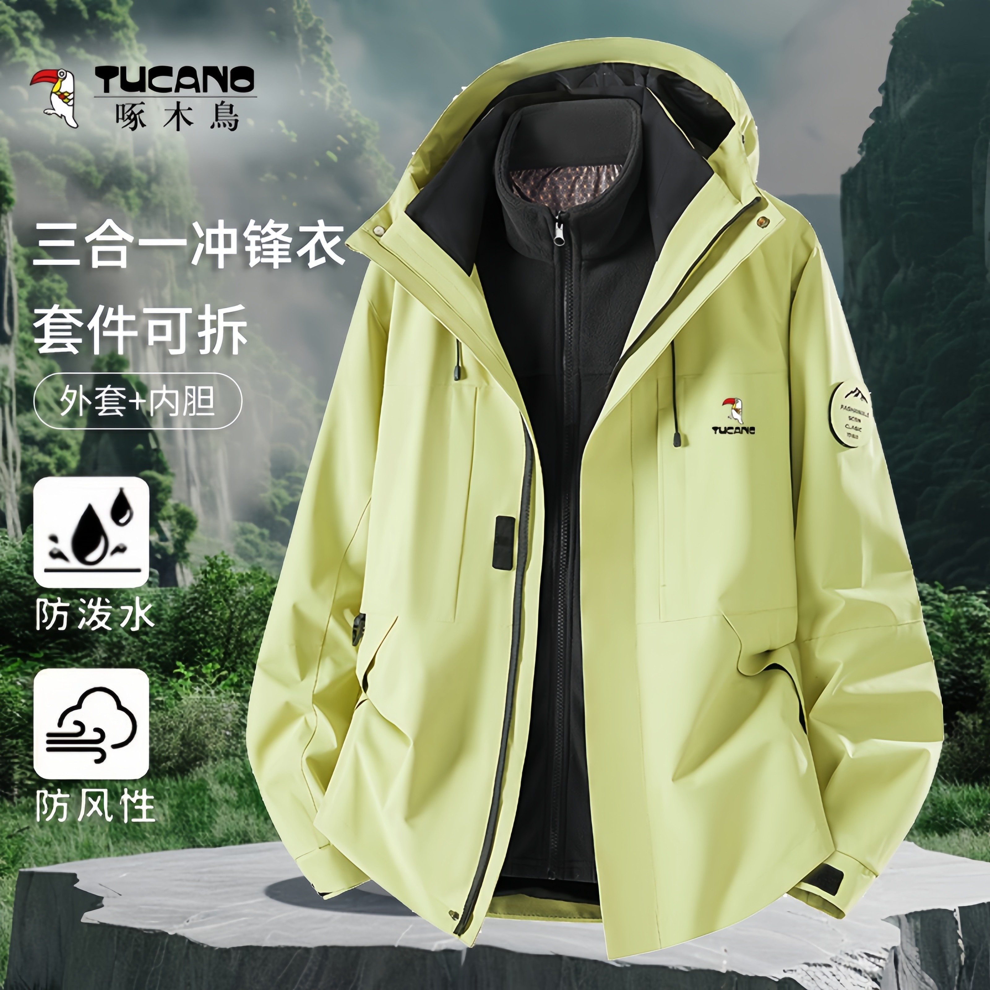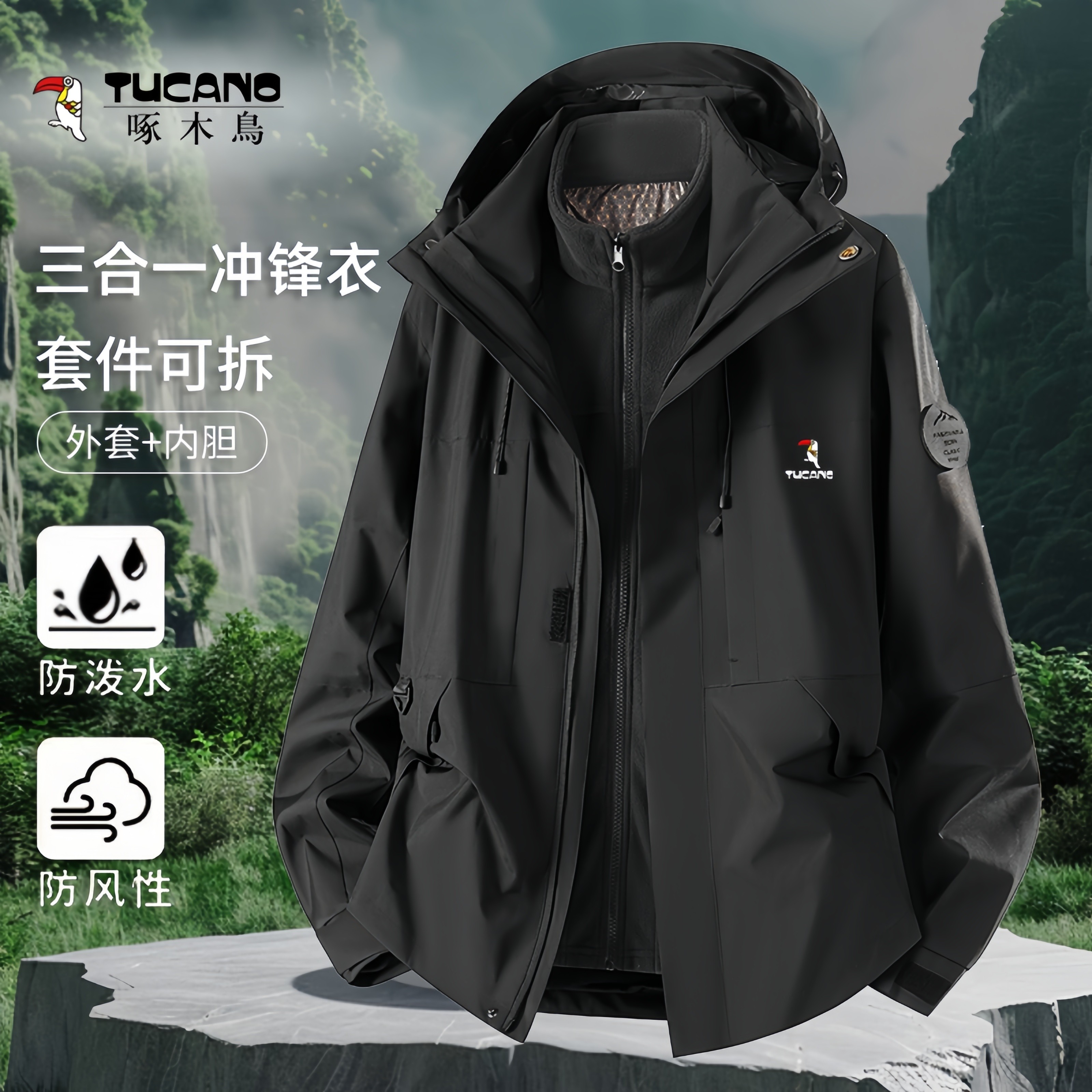 啄木鸟冲锋衣男女2025新款户外休闲防风防水外套秋冬三合一登山服