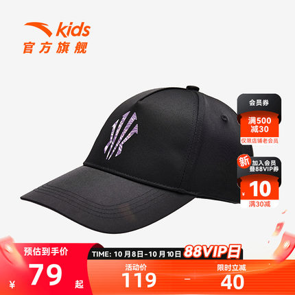 安踏儿童男大童棒球帽2025秋季新款透气舒适中大童防晒帽速干帽子
