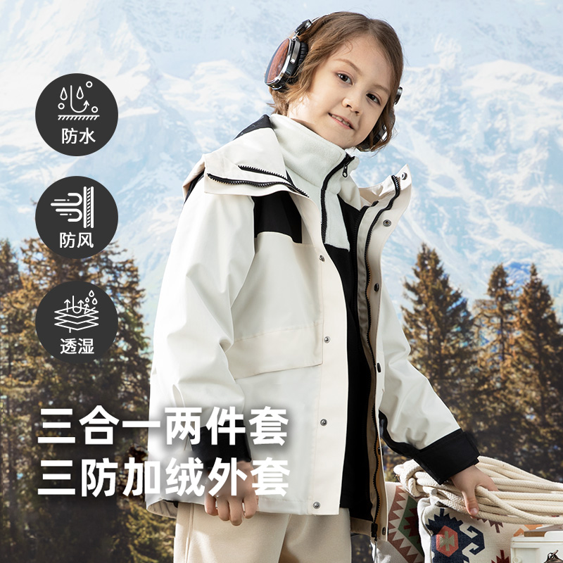 斯博兰帝儿童冲锋风衣春秋男童三合一两件套女童加绒外套防风衣