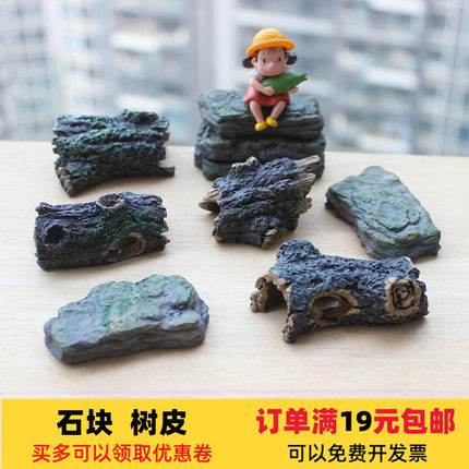 树脂仿真树皮石头石块可泡水水族鱼缸造景装饰多肉花盆微景观摆件