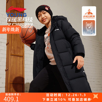 李宁童装长款羽绒服2025年新款冬季男童中大童加厚外套连帽长羽绒