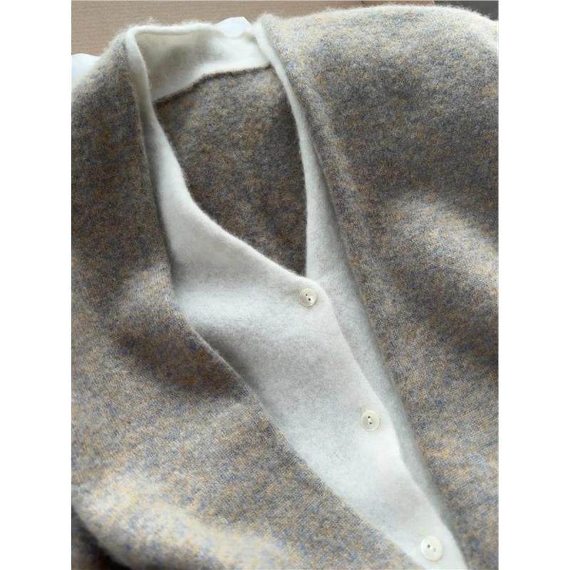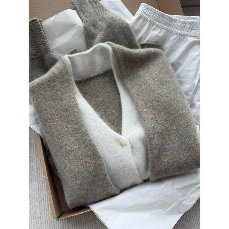 CHAO级!老钱风撞色羊毛假俩件毛衣女秋季松弛感显瘦针织开衫