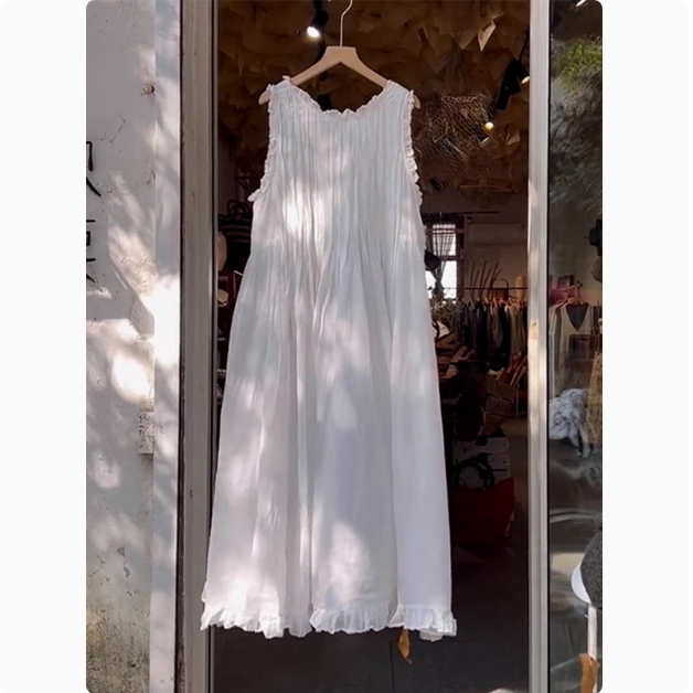 牛X货 巨炸裂!别致亚麻长裙气质木耳边高级感棉麻背心连衣裙女春