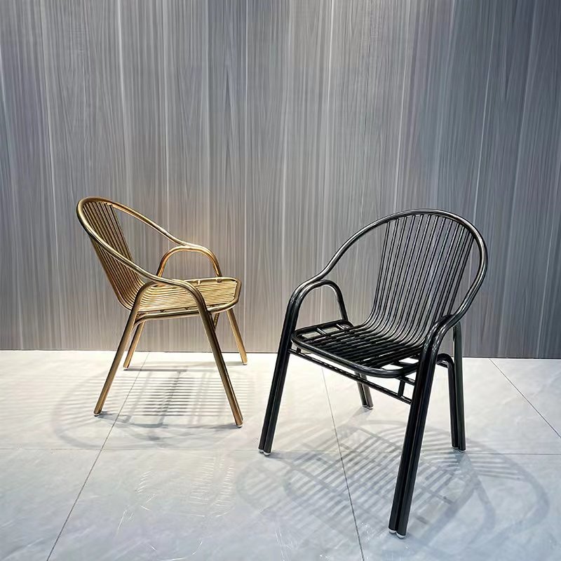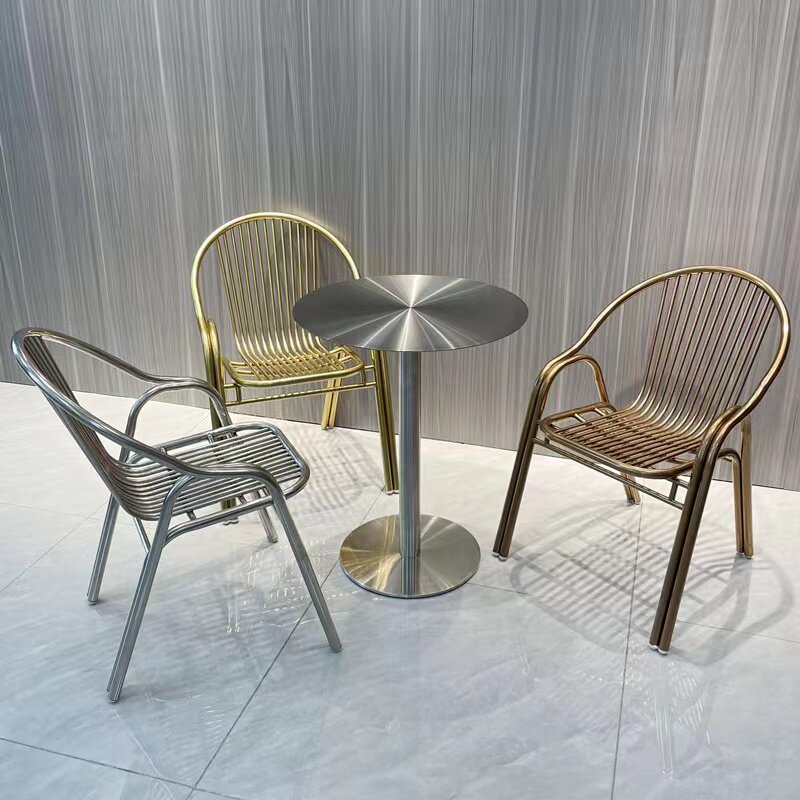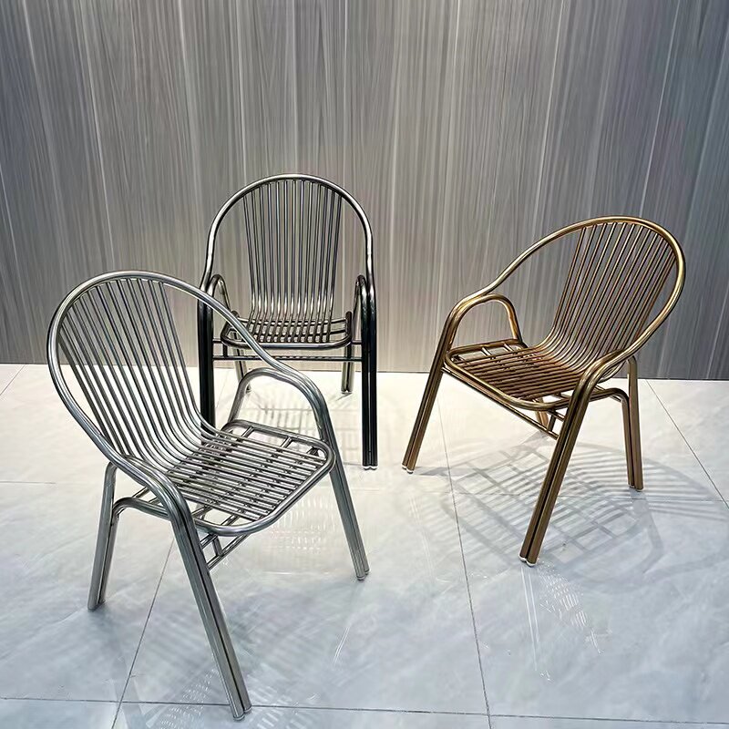 加厚凳子不锈钢椅子靠背椅家用金属户外阳台餐椅单人扶手休闲座椅
