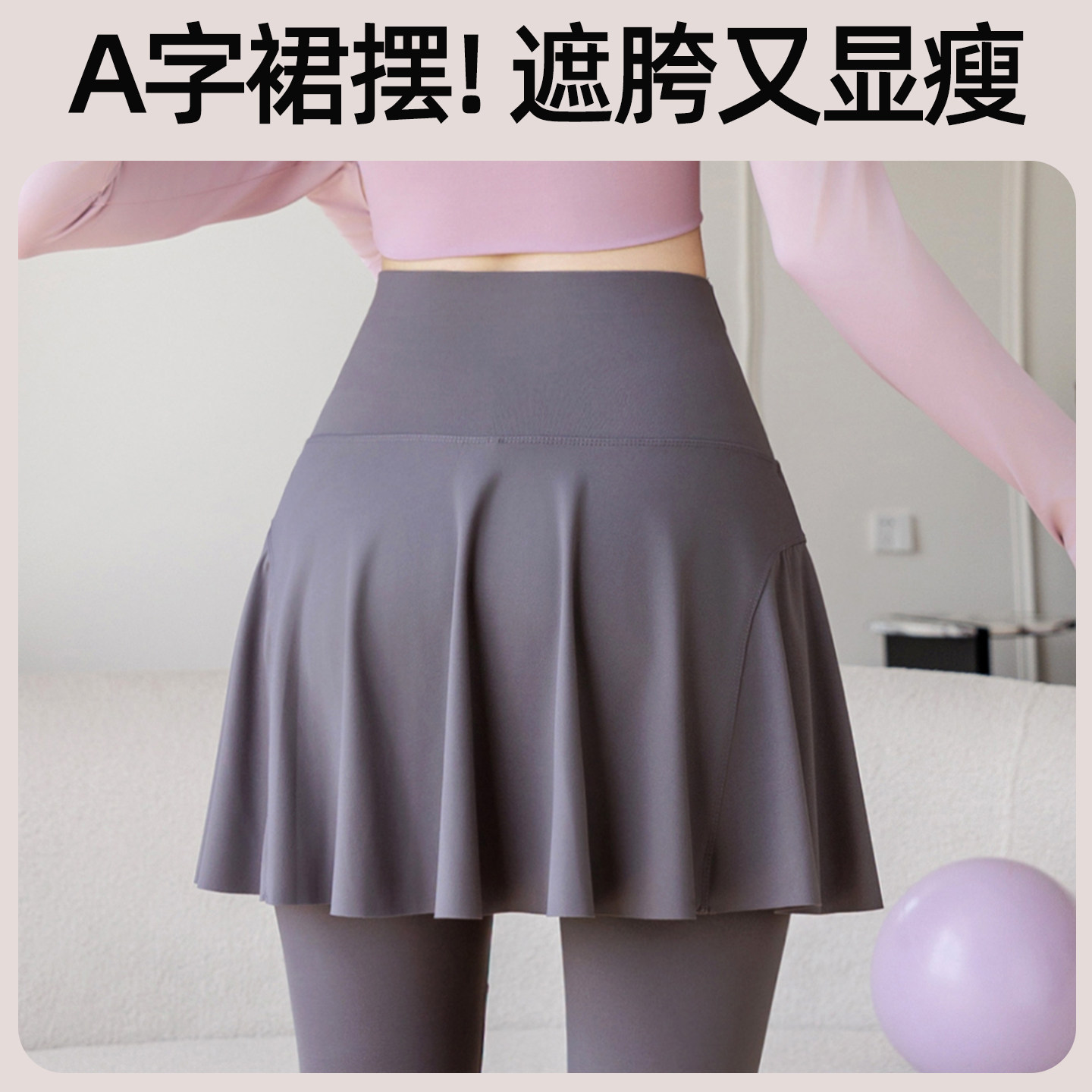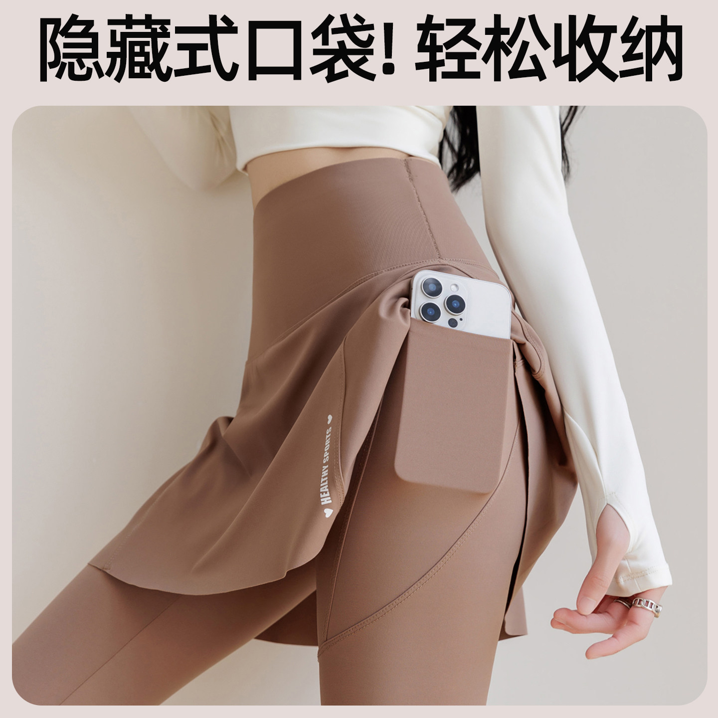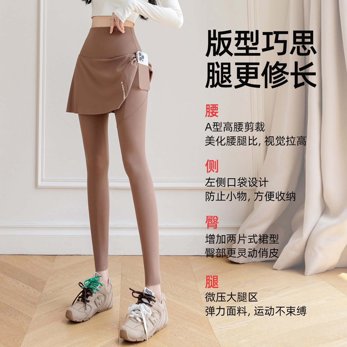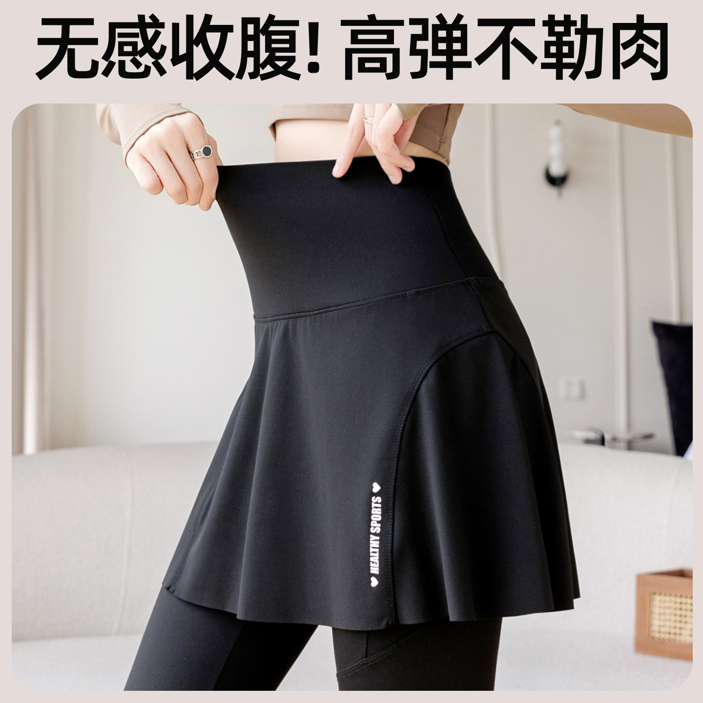 假两件鲨鱼裤裙女外穿春秋薄款高腰收腹口袋瑜伽健身黑色打底裤子