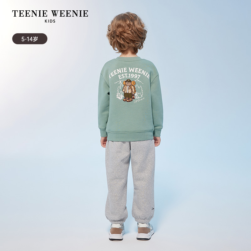 TeenieWeenie Kids小熊童装秋冬季款男童绣印花加绒圆领套头卫衣