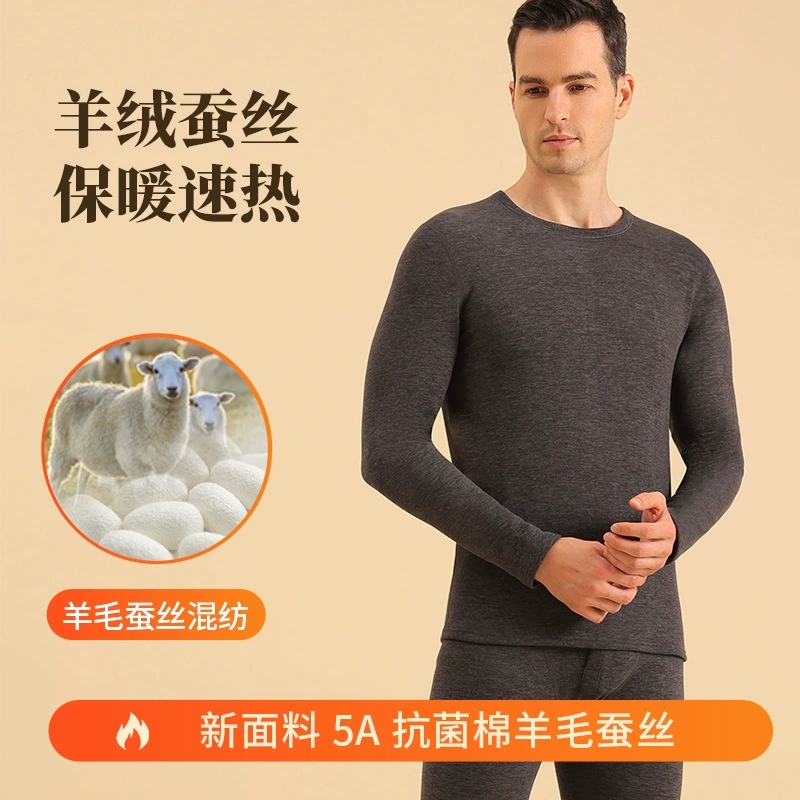 蚕丝羊绒保暖内衣男士加绒加厚女