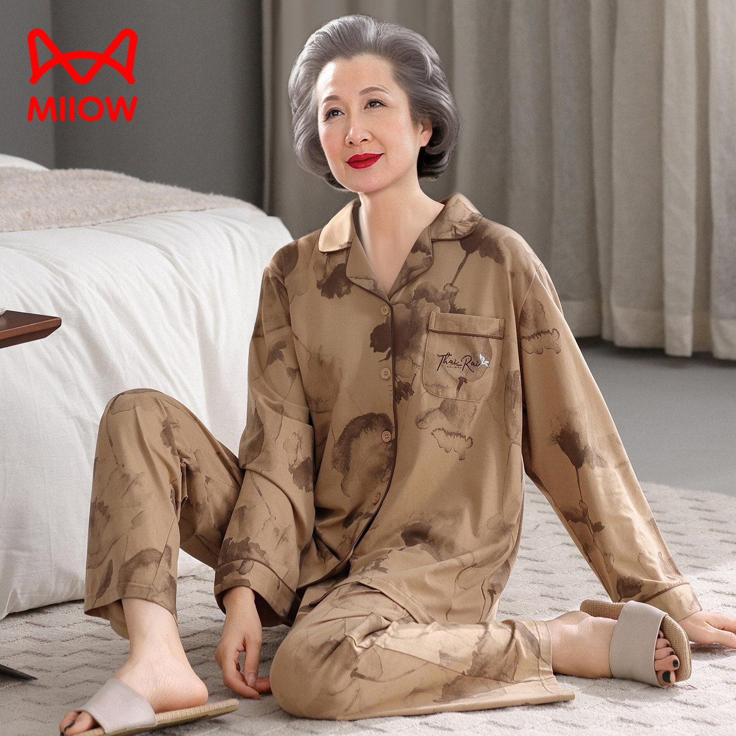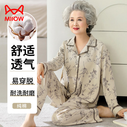 猫人睡衣女2026春秋长袖纯棉开衫506070多岁中老年妈妈奶奶家居服