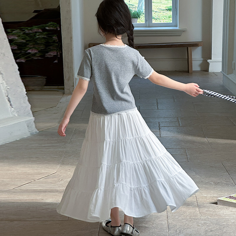 女童夏季半身裙2025新款儿童法式漂亮白色裙子小众蛋糕裙中长裙12