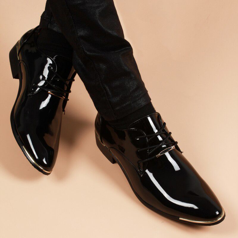 男士英伦正装尖头透气皮鞋男商务