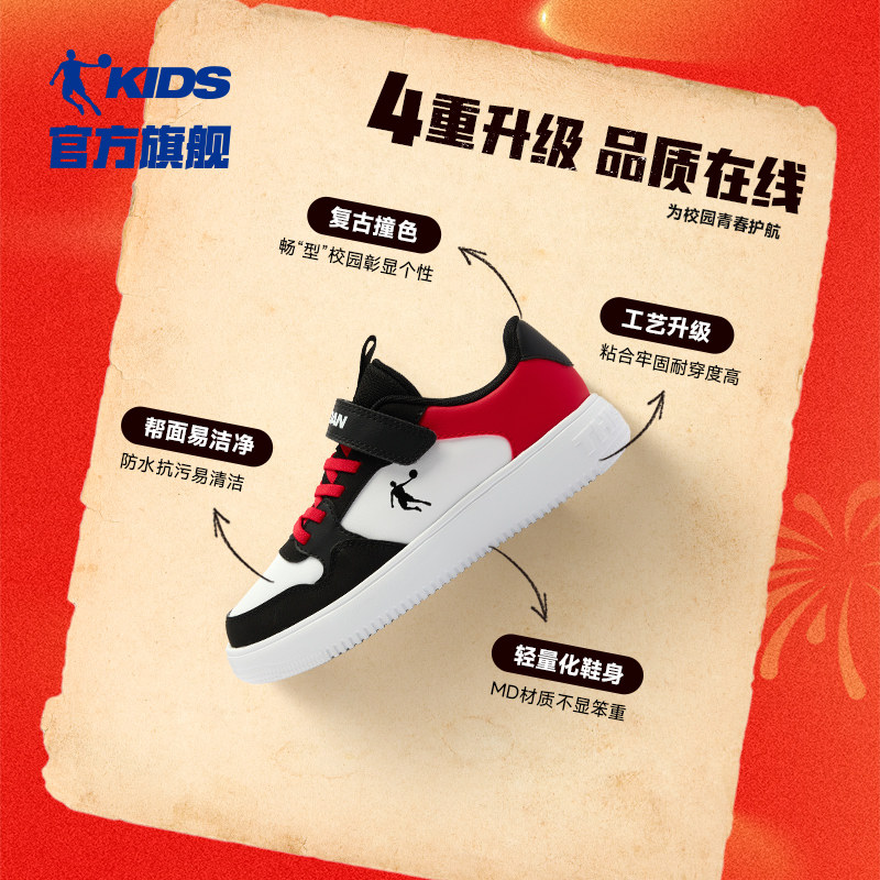 乔丹新年童鞋儿童板鞋低帮2025本命年男女童红色休闲运动鞋小白鞋