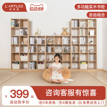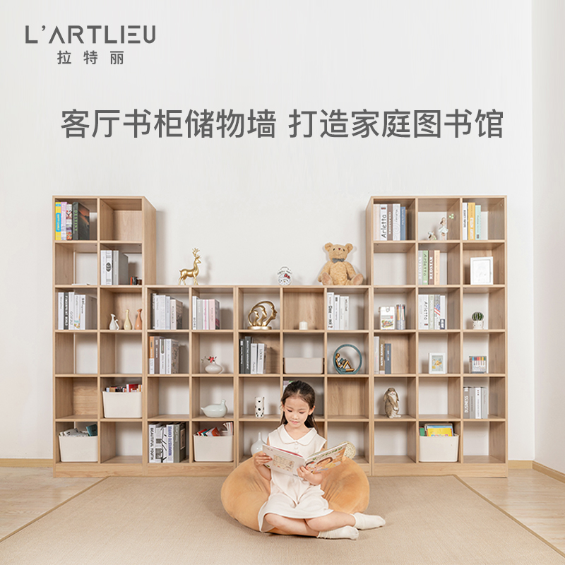 拉特丽多层多列实木书架创意镂空书柜办公书架分区收纳