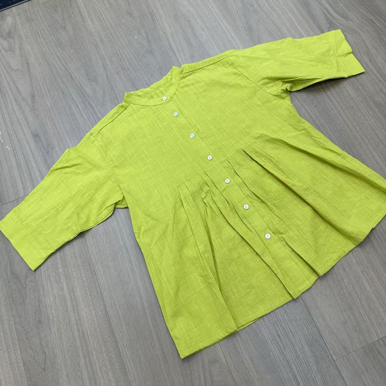 夏季新款风琴褶气质优雅半袖衬衫(25041002)