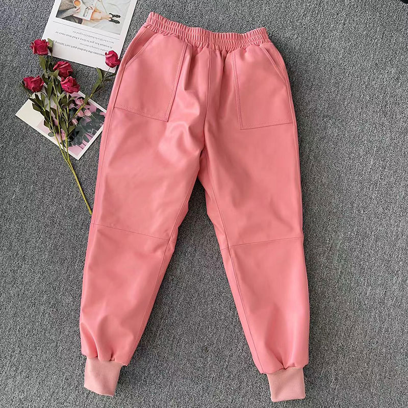 真皮高腰外穿羽绒裤女时尚哈伦裤宽松小脚裤绵羊皮百搭九分休闲裤