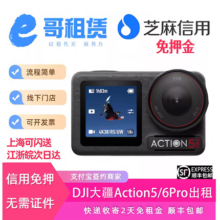 出租DJI/大疆Action5/6Pro运动相机防水摄像潜水滑雪骑行防抖租赁