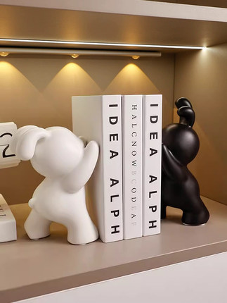 懒地创意兔子书挡摆件酒柜客厅玄关书柜陶瓷桌面可爱书立装饰摆件
