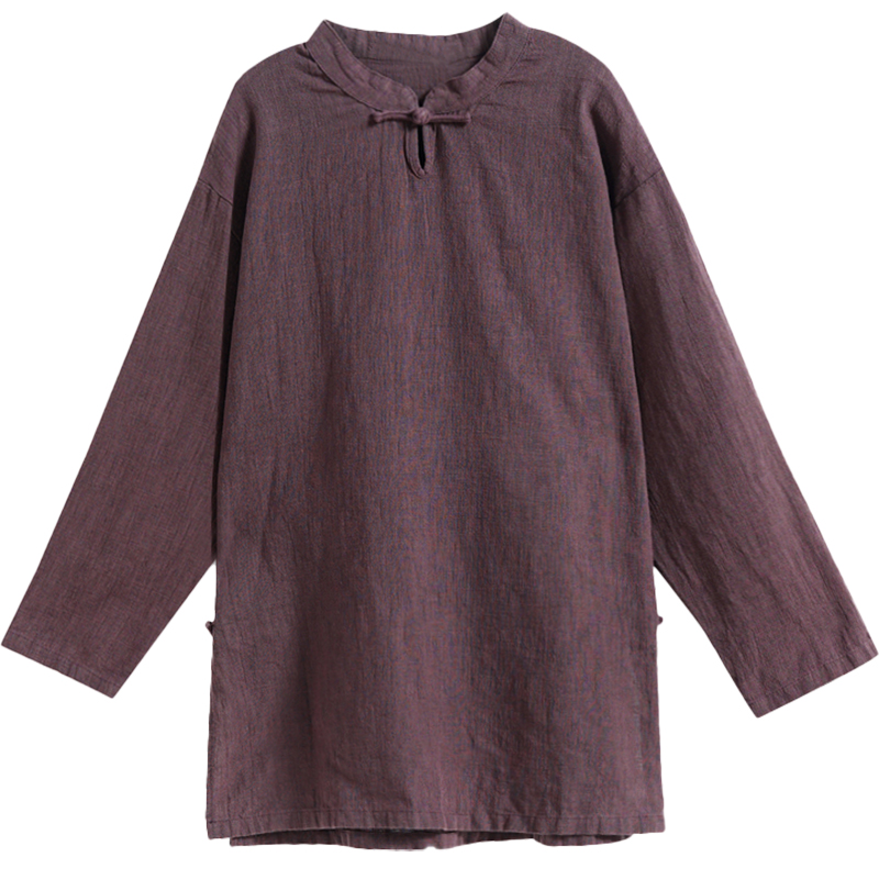 苎麻新中式复古衬衫女式2025春秋新款棉麻国风禅意茶服长袖T恤衫