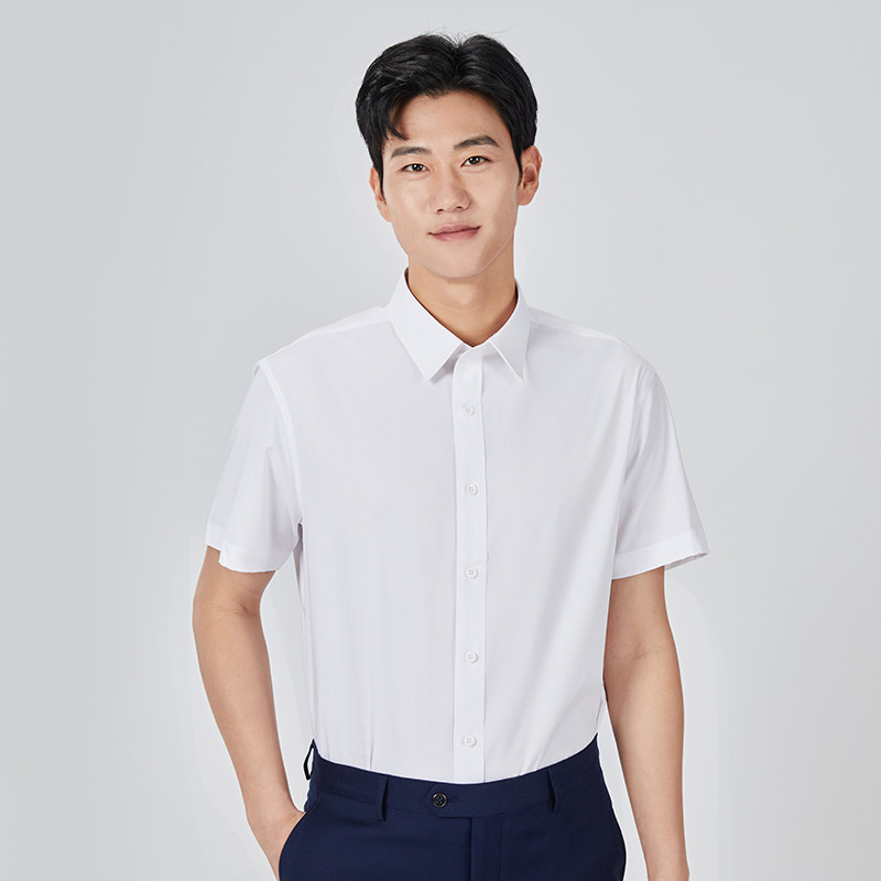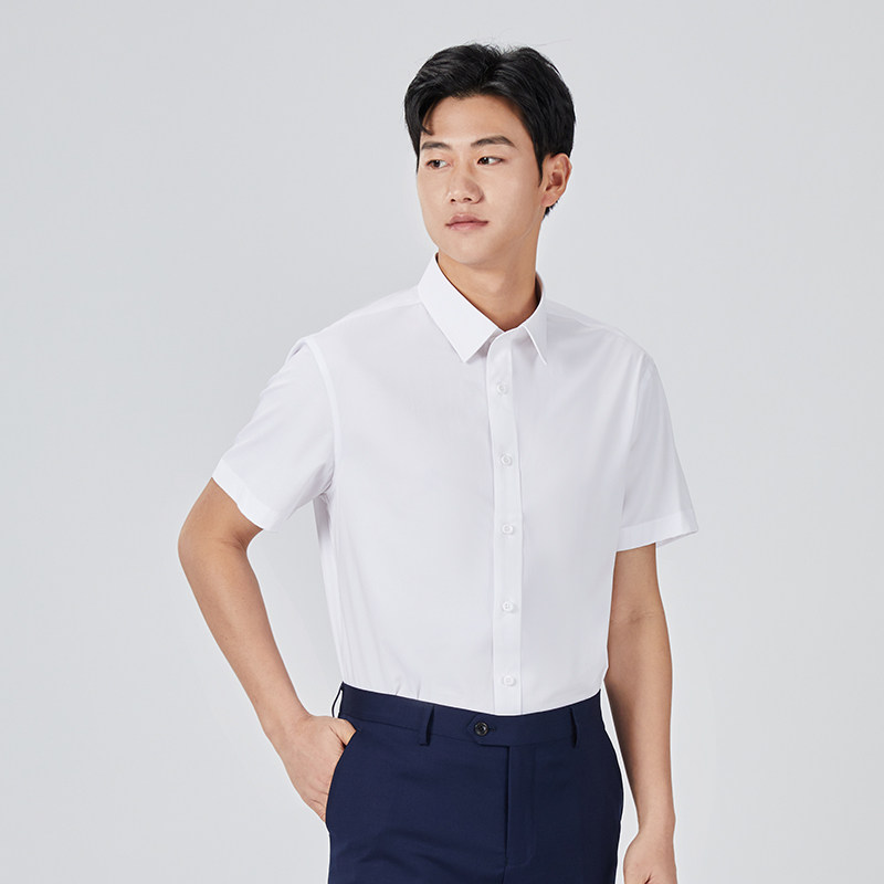 【竹纤维】乔治白夏季薄款男士短袖衬衫白色商务衬衣微弹休闲上衣