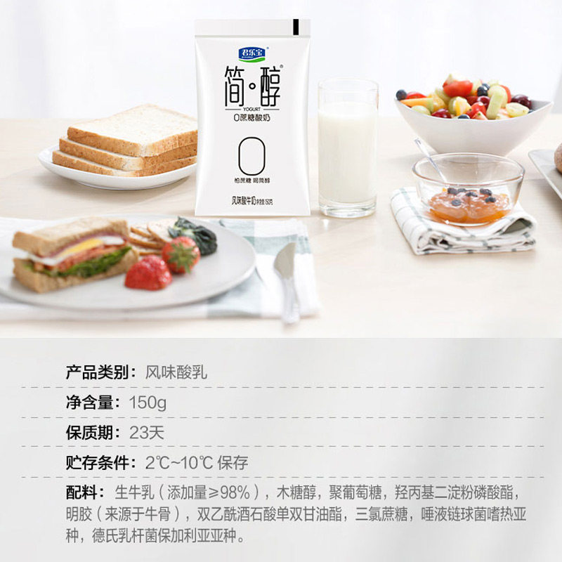 【详情页下单领优惠】君乐宝简醇0蔗糖低GI酸奶150g *12袋