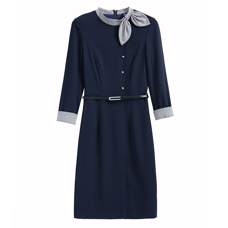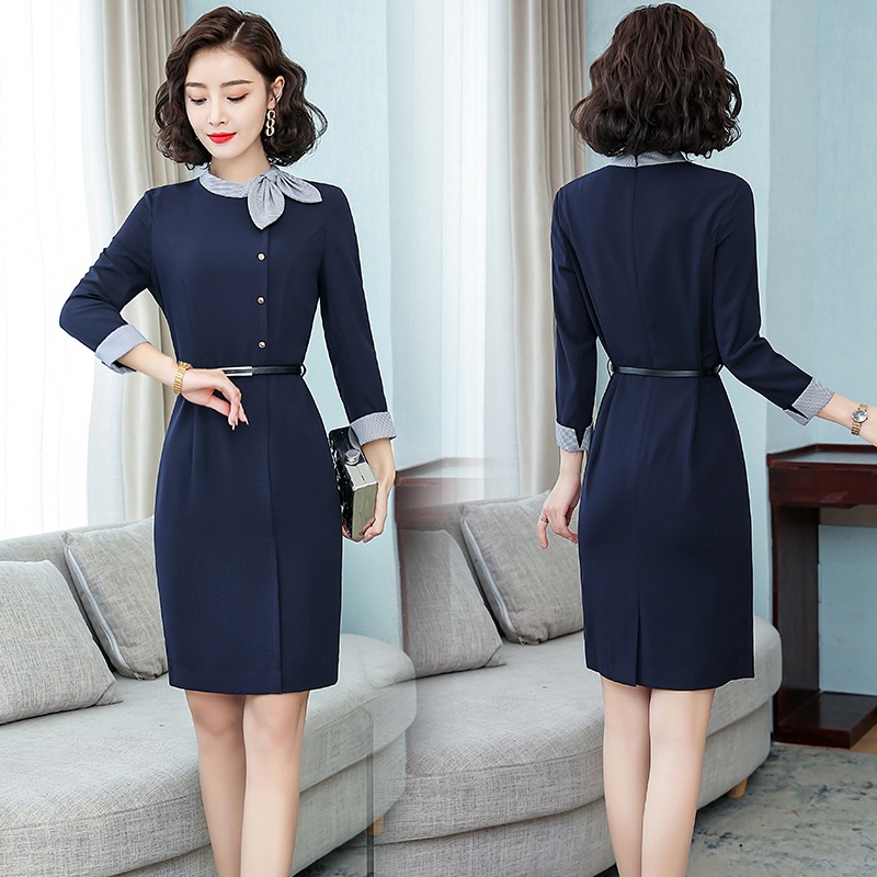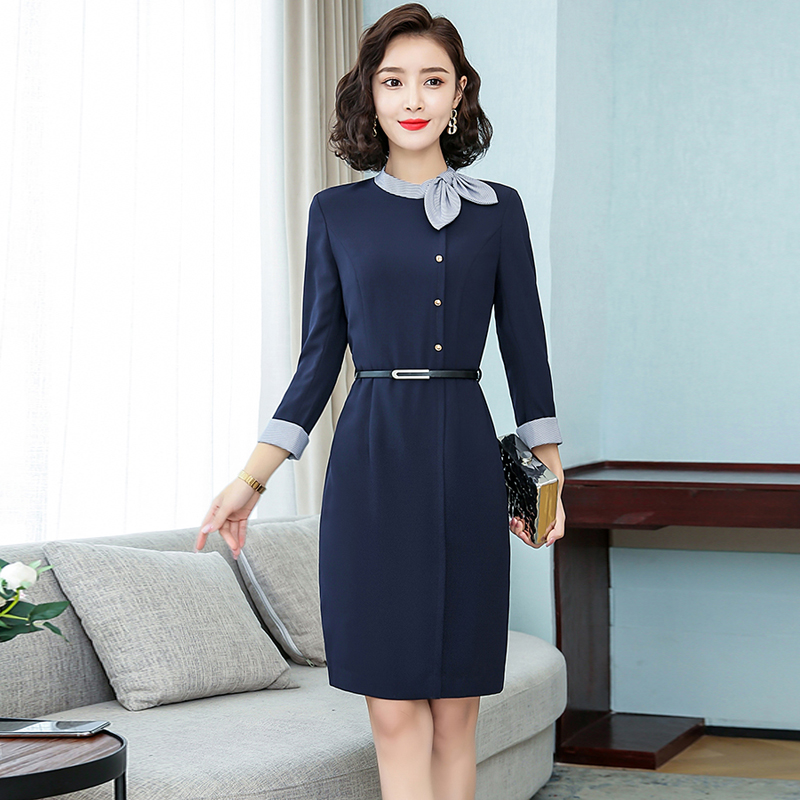 高端职业连衣裙子女气质时尚长袖酒店前台工装美容师幼儿园工作服